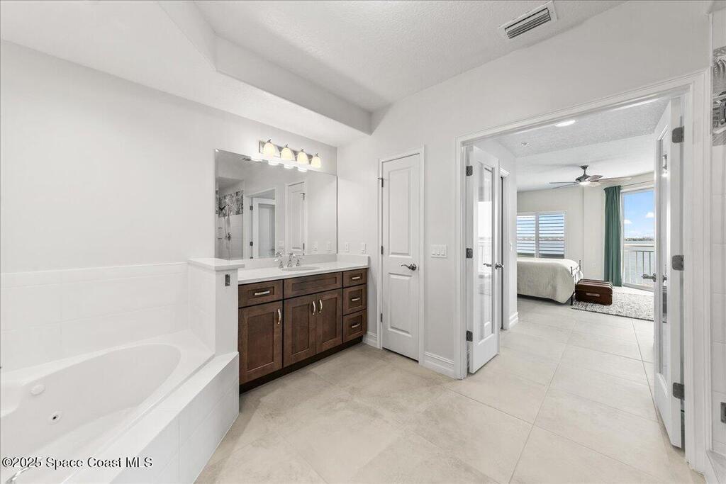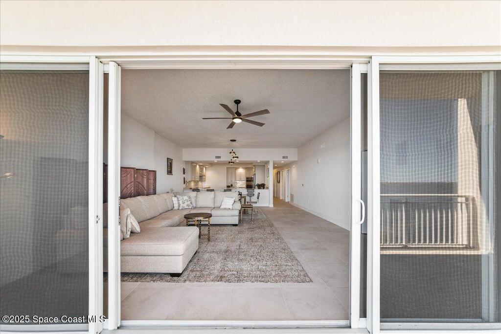 OCEAN and river views from the 9th-floor residence, built in 2022, offering the feel of a brand-new home with modern finishes and pristine condition. Featuring 10' ceilings and floor-to-ceiling impact-resistant glass, this stunning condo showcases breathtaking panoramic views of the Indialantic skyline and the vibrant blue ocean, where cruise ships are a regular sight. Off the expansive 165 sq. ft. balcony, enjoy the ever-changing beauty of the Indian River, with playful dolphins, diverse bird species, and marine life creating a serene natural backdrop.Designed as a premium upgraded unit by the developer, this 3-bedroom, 3-bath condo was thoughtfully curated by a designer, featuring carefully selected coastal tile and accents throughout its 2,082 sq. ft. of refined living space. The well-appointed kitchen with tile backsplash, center island,soft-close maple cabinetry, GE appliances, and a beverage fridge, offering both style and functionality.
