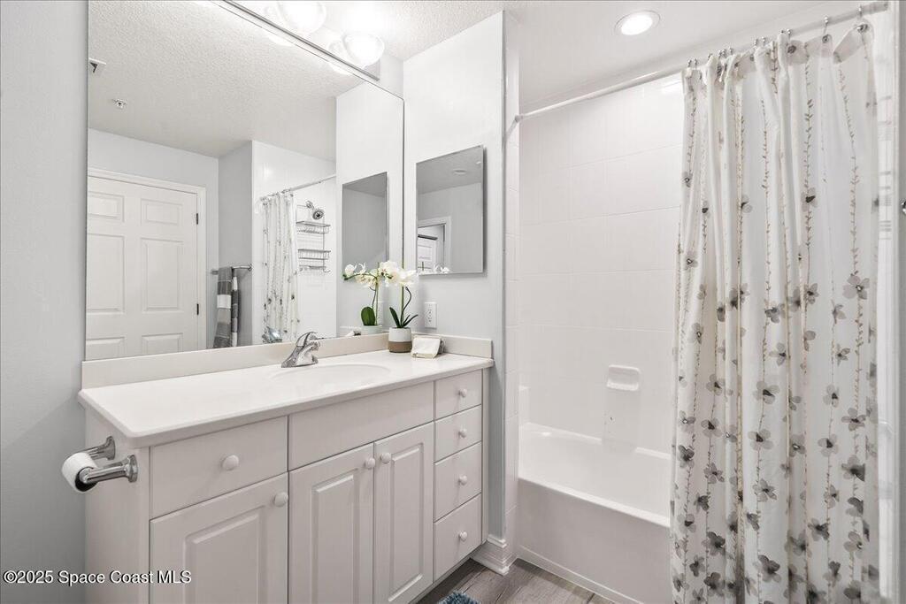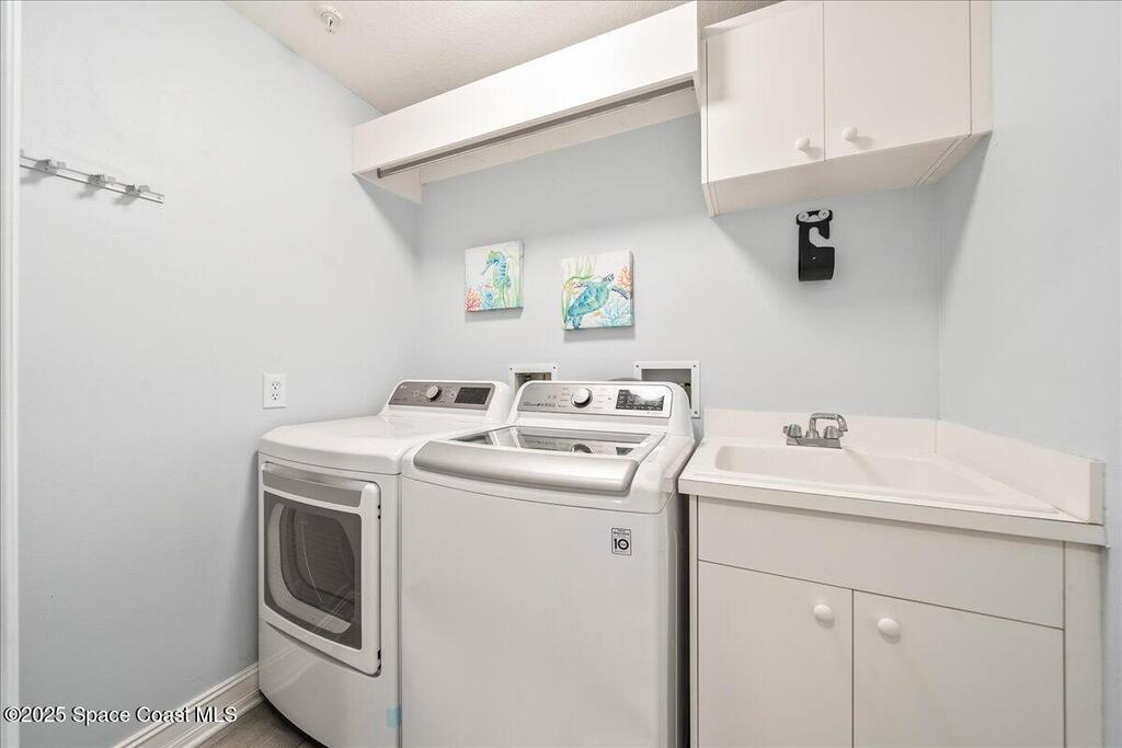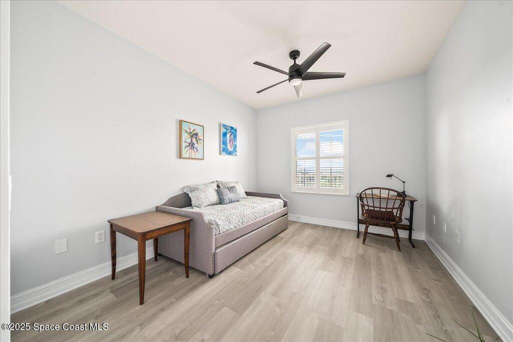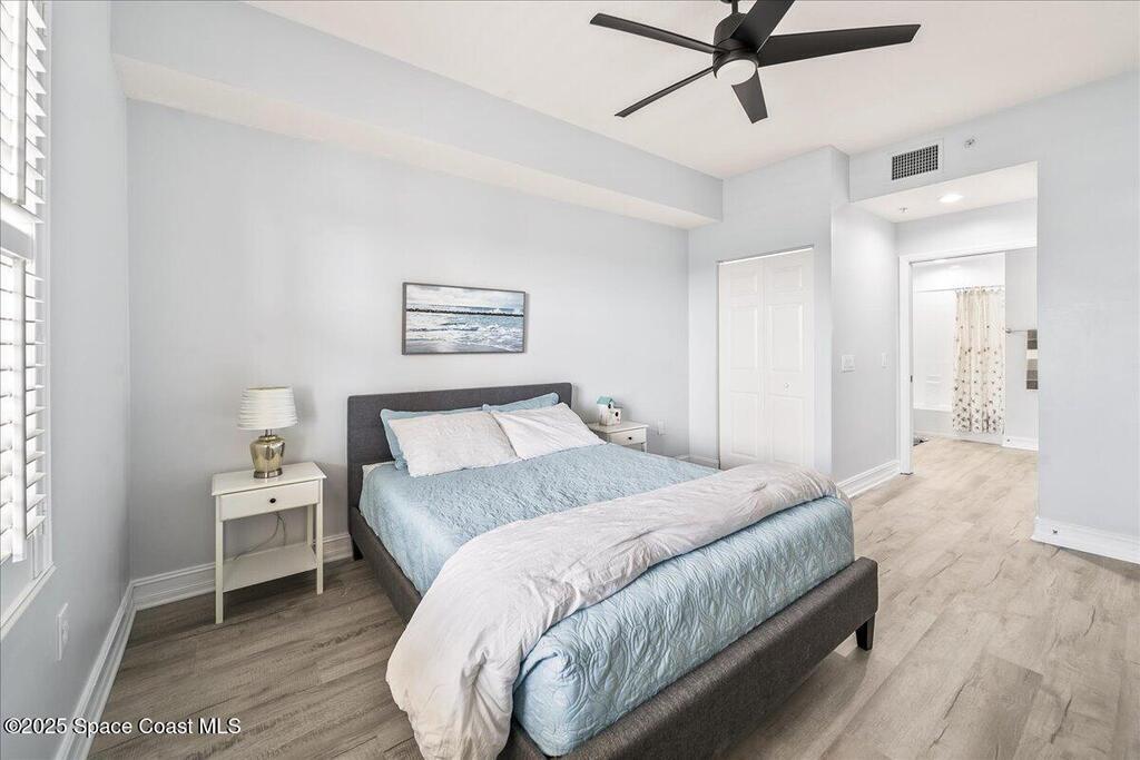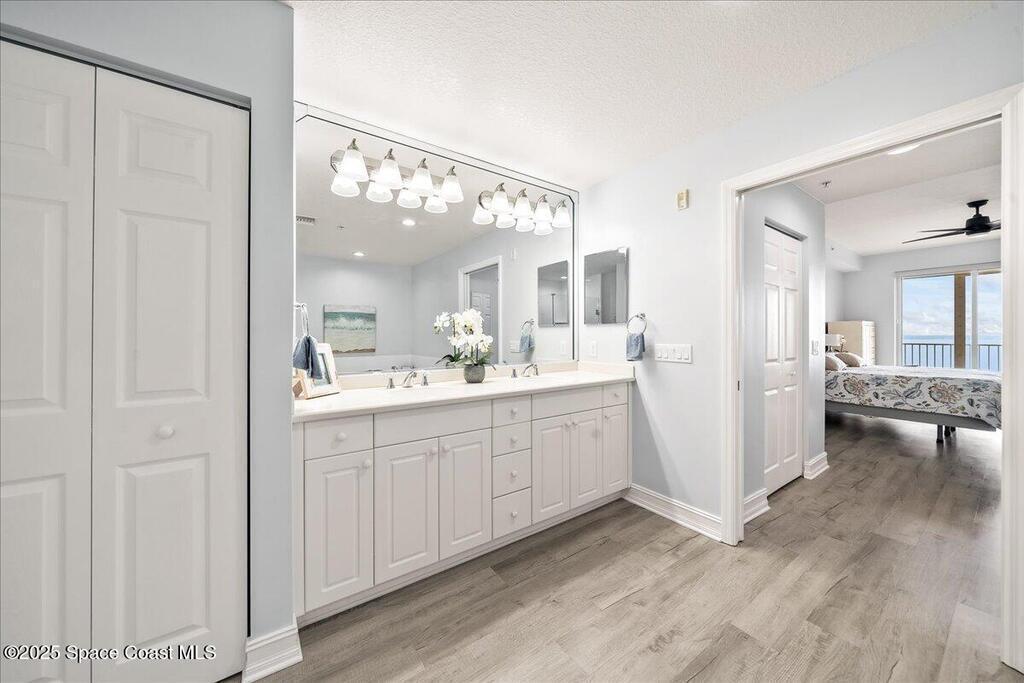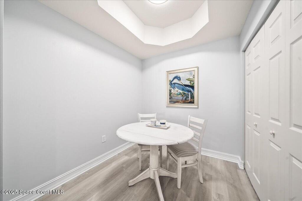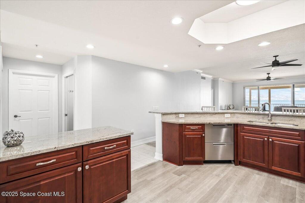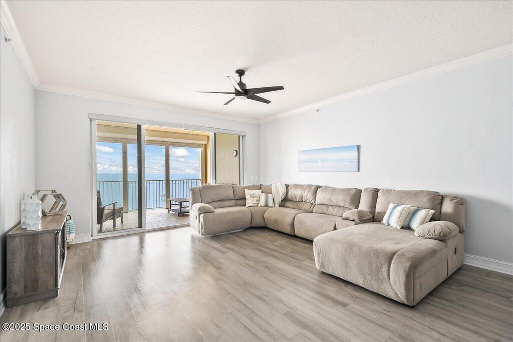 Spectacular penthouse views across the Intracoastal span from sunrise to sunset. Beautifully appointed home incorporates over 2,000 s/f of luxe finishes including neutral LVP flooring throughout, marble-look entry tile, and fresh interior paint. Spacious kitchen features high-end cherry cabinetry with granite counters, task lighting, stainless steel appliance suite and Fisher-Paykel dishwasher drawers. Airy owner's suite opens to covered porch where you can watch dolphin below and space launches above. This is truly paradise! Rich resort-style amenities to pamper yourself including swimming, fitness, sauna, tennis, and more. Stroll the riverfront boardwalk, indulge yourself with the Island Pointe lifestyle. Minutes to shopping, dining and beaches.