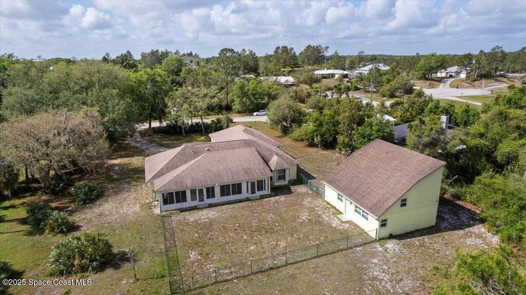 Looking for the perfect Family ''Homes'' on Acreage. This property boasts a large Concrete Block Main house single story, and a Cacita (in-law home) 2 story, on the rear of the property, all on 1.3 acres in Southern Mims. Well maintained Main home with Huge Great Room and Kitchen with Vaulted ceilings, Laminate Flooring, owner designed the 2nd & 3rd bedroom to be one large sewing room and can put wall back up to make full 3 bedrooms, with 3 car garage, plus storage, Large inside Laundry Room, Large Florida Room also under Air at the back of the Main Home. Second Home, the CaCita can be used for Private In-Law home, Main floor has open concept Living, Bedroom, bathroom and Kitchenette, with open second floor space that could be used for multiple things, another bedroom, game room, etc. Property is on county water and has 2 septic tanks. Perfect Home for a Multi-Generational Family!! Both homes designed for wheelchair access, wider doorways, higher toilets, grab bars & roll in showers.