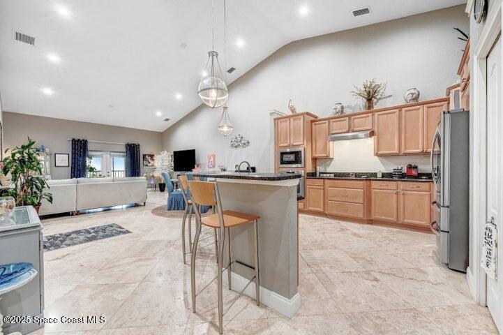 Contemporary, modern & elegant, updates you want find anywhere else. Beach side Community with large POOL /waterfall, Clubhouse, Fitness center, Tennis court. ThisUnit has one of the best locations with shady Park area in front and nobody behind. This Unit is in superb condition 12 recessed lights were ADDED to the soaring ceilings and brighten up this elegant place as no other. Abundant kitchen space with lg. breakfast bar, stainless steel appliances and walk in pantry. Delightful front balcony with French doors from a 17x15 room, with the latest modern decor. All doors & windows Hurricane proof. Lg. Master his & her oversized walk-in closet & Master bath, separate garden tub, glassed in shower and private toilet stall. The screened back balcony spans across the entire back, with tile floors. Travertine & matching luxury vinyl plank floors throughou