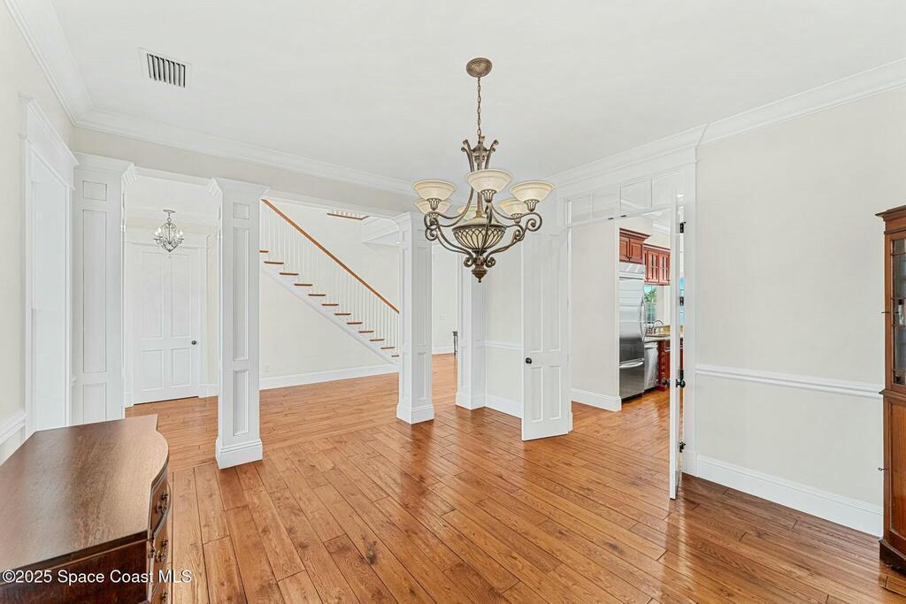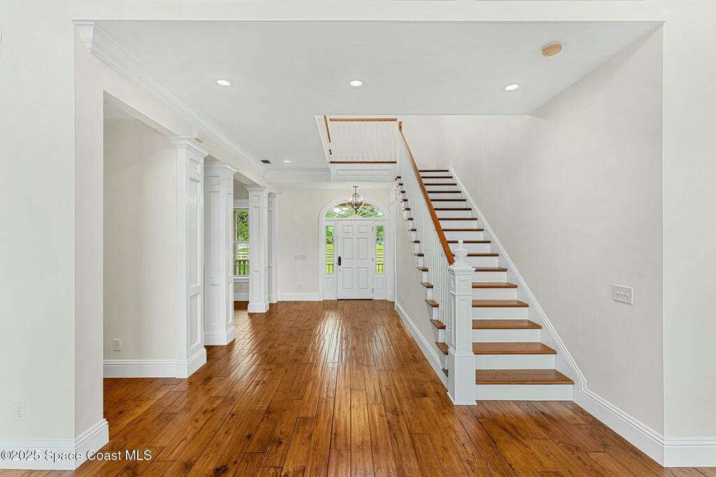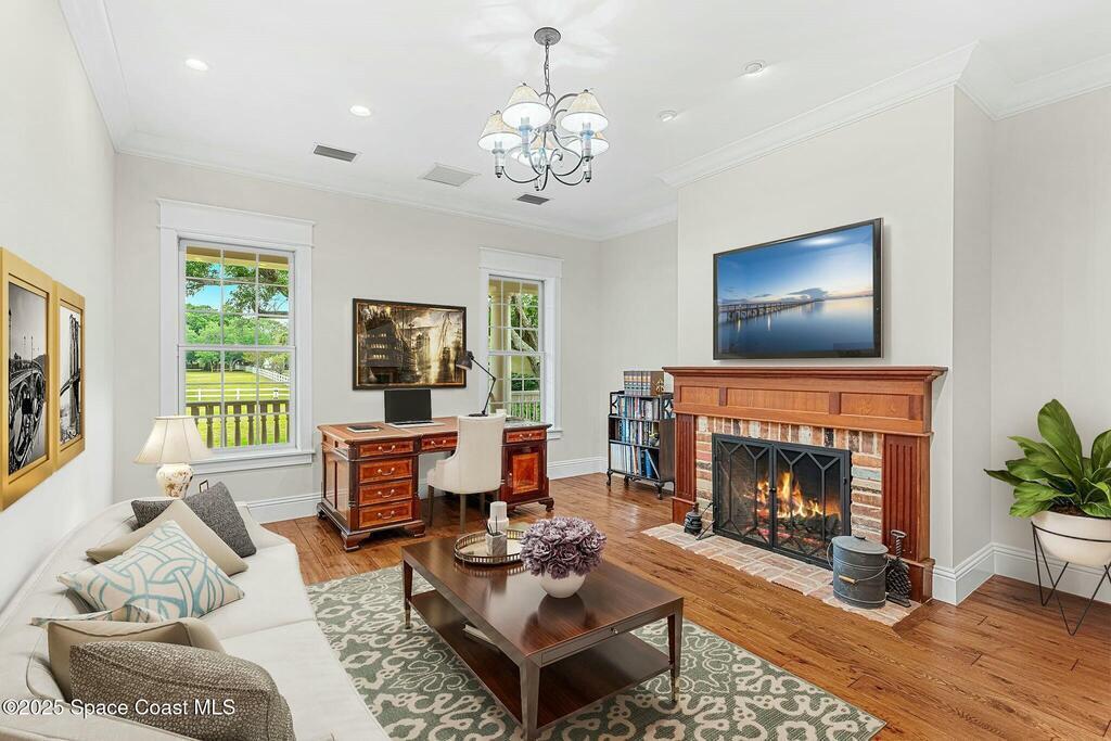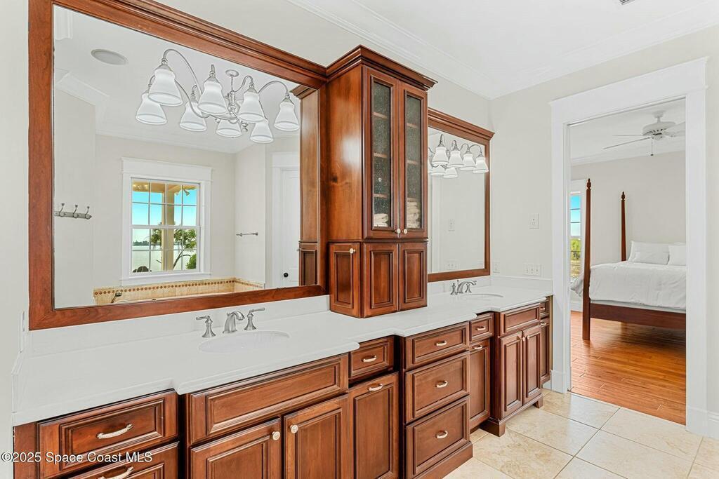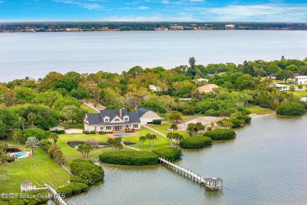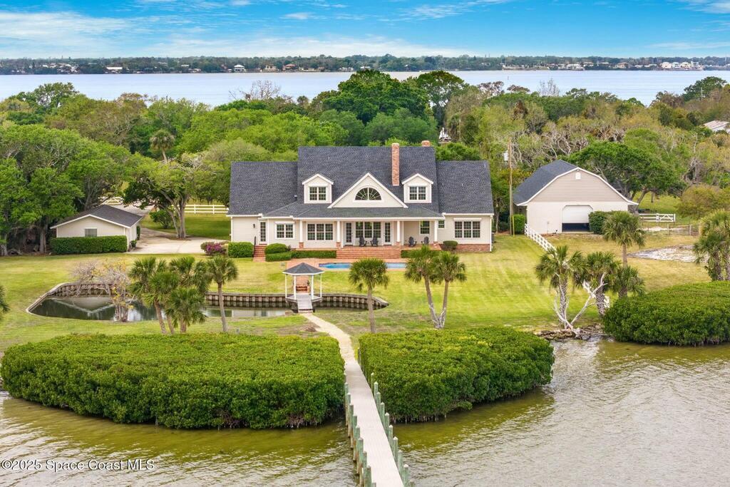 A rare River-to-River estate on nearly 6.2 acres along prestigious S. Tropical Trail offers unparalleled privacy, grandeur, and breathtaking waterfront views. A majestic oak-lined drive leads to this stately residence, featuring 540+ft of Banana River frontage to the east and 200+- ft on the Indian River to the west--both with docks, ensuring stunning sunrises and sunsets. The elegant interior boasts gleaming wood floors, soaring cathedral ceilings, and walls of windows framing serene water views. A river-facing kitchen, spacious living areas, and a luxurious primary suite create an inviting yet refined ambiance. Upstairs, three bedrooms, a Jack & Jill bath, an on-suite, and a versatile bonus room offer ample space. With a new roof (2021) and fresh exterior paint, this estate is a once-in-a-lifetime opportunity to own a rare dual-river property. Experience timeless elegance, unmatched tranquility, and endless possibilities.