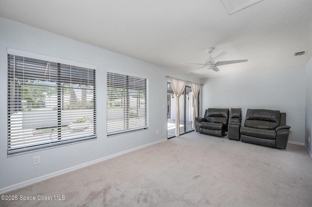 Gorgeous paver driveway and lush landscaping greet you as you arrive at this lovely, expanded Madison Model, located in a resort-style country club community, offering top-notch amenities for an exceptional Florida lifestyle. Vaulted ceilings, bright open floor plan, indoor laundry, updated bathrooms, modern fans and light fixtures, make this home move-in ready. Bonus room attached to the large owner's suite makes an ideal, private office or a place to relax, curl up, read a book, or enjoy your favorite hobby. There are sliding glass doors that lead to the lanai from the bonus room and living room. Guest bathroom also has access to the spacious screened lanai. Home includes an open air atrium, great for combining open space, natural light & the potential for a unique & inviting garden, or space for relaxation, and enjoying your morning coffee. Home to over 600 Military Veterans, Indian River Colony Club is a Private 55+ Country Club community with an extensive maintenance program for