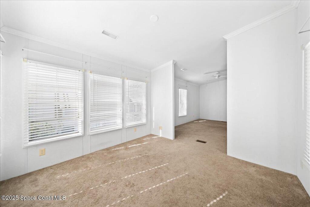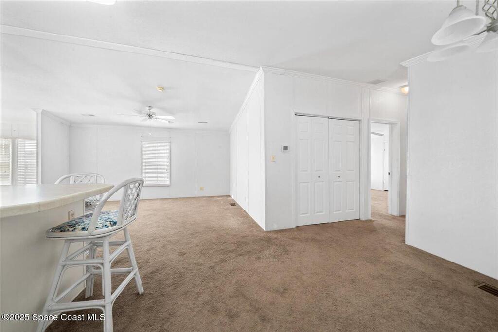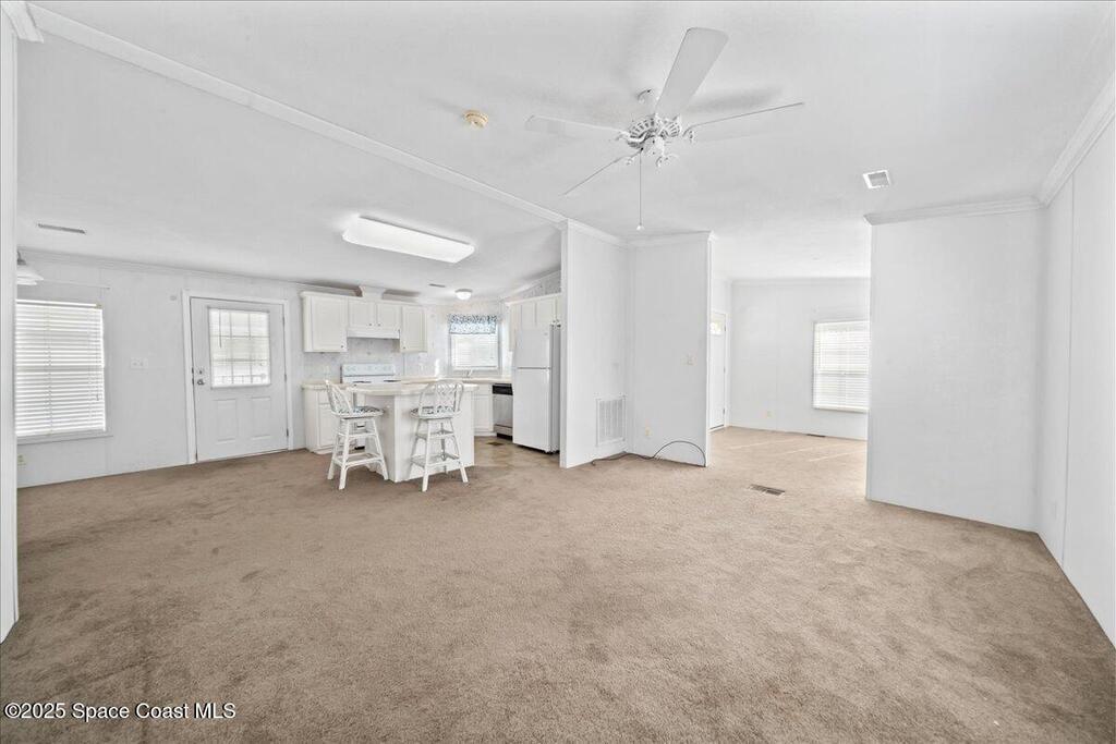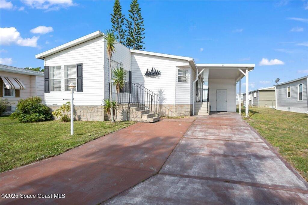 Enjoy life in beautiful Barefoot Bay along the Indian River. Stay in the communiity and enjoy 3 different pools, golf course, Tennis, Pickleball, dozens of Social clubs, and too much more to even mention or venture out to the endless local lifestyle. This 2 bedroom, 2 bath home has a large open lliving space with plenty of room to entertain.