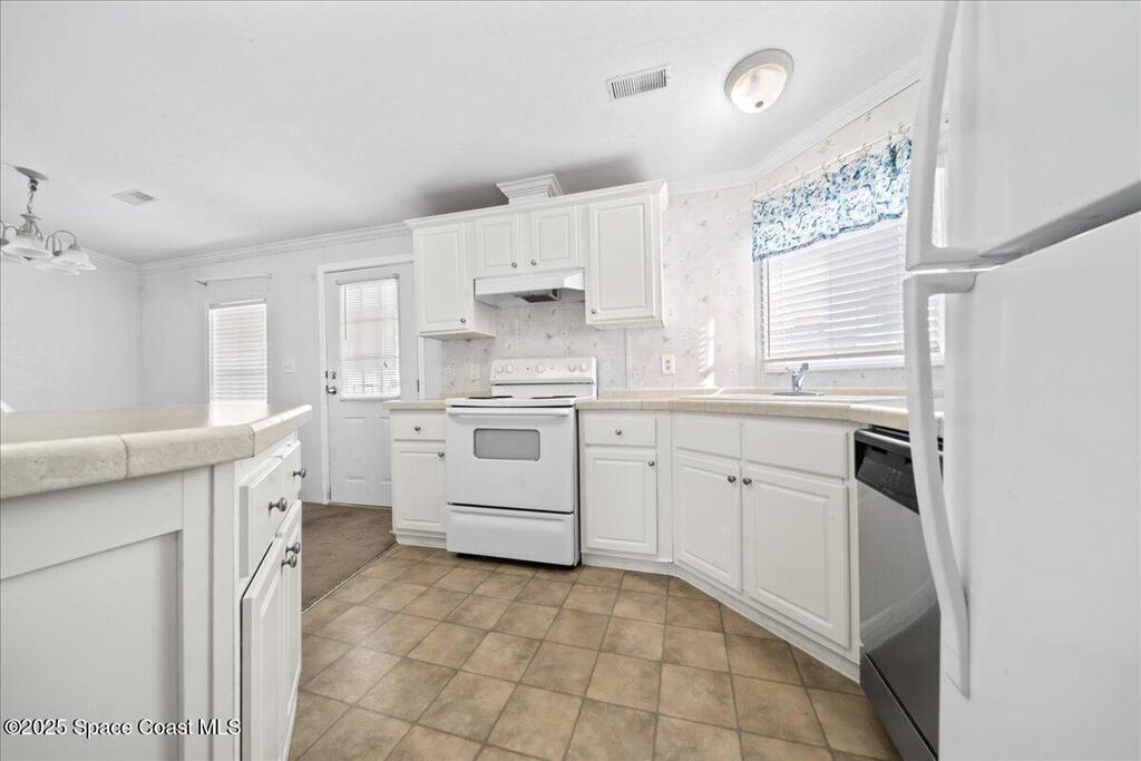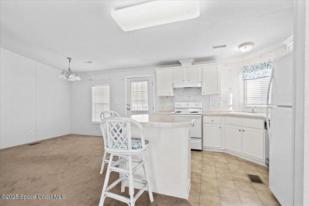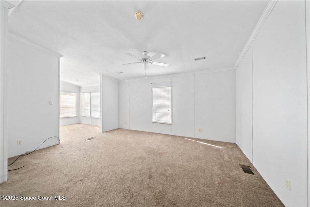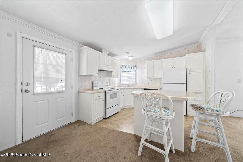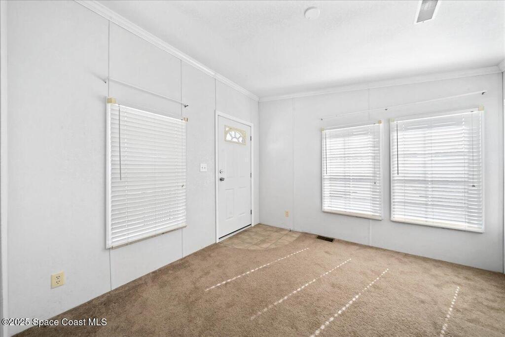 Enjoy life in beautiful Barefoot Bay along the Indian River. Stay in the communiity and enjoy 3 different pools, golf course, Tennis, Pickleball, dozens of Social clubs, and too much more to even mention or venture out to the endless local lifestyle. This 2 bedroom, 2 bath home has a large open lliving space with plenty of room to entertain.
