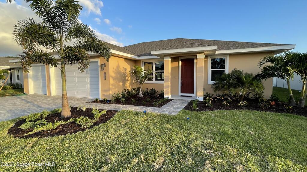 ONLY 1,000. DOWN, ALL CLOSING COST PAID w/ use of preferred lender. HOME WARRANTY! LAST 3 Car NEW HOME to close out the community. LOT 46 with lake views... Welcome to Palm Bay's newest exclusive community featuring 50 total home-sites. New Home Construction has began on this beautiful 3 bedroom, 2 bath, 3 car garage home with a large covered lanai. This home offers a large great room / open plan design with Dining area, spacious kitchen with many beautiful upgrades with deluxe full appliance package. The master suite features 9'4'' ceiling, 2 large walk in closets, and Master bath retreat with large tile walk in shower, & dual sinks with Quartz countertops. Oversized Laundry room with cabinets & additional extras! Attention to detail in every aspect of this home from flooring, to lighting, cabinets & more. Community offers city water & sewer lots, nice lake-views when entering into this quiet neighborhood. Community is in the FINAL STAGES, so DO NOT MISS an Opportunity!