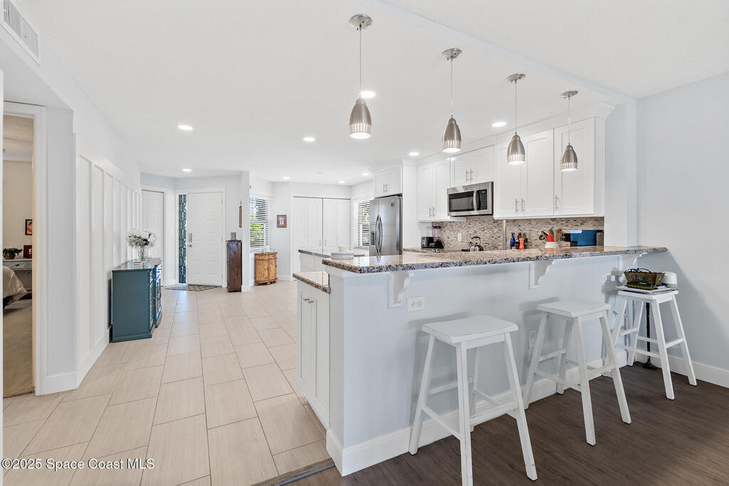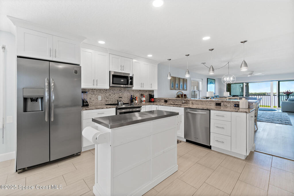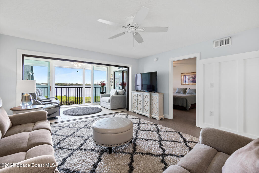 Stunning Riverfront Condo in Rock Pointe, Cocoa Beach | Fully Furnished | 2nd Floor End Unit | Completely RemodeledThe completely renovated space features:Open floor plan with custom wainscoting and natural light throughout. Kitchen with stainless steel appliances and extended breakfast nook. Florida room overlooking the Banana River. Primary suite with walk-in closet, dual sinks, stand-alone shower, and jetted tub. Second bedroom ideal for guests or home office. Front porch with rocket launch views. Community dock access for fishing.No assessments, and all community renovations completed.