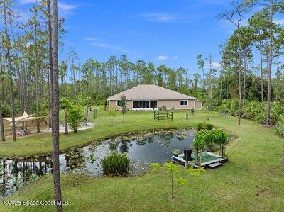 Modern luxury meets natural beauty in this stylish 4-bedroom, 2.5-bath home with 2-car garage. Nestled on 2.5 acres and built in 2020, this home features an open great room concept, perfect for entertaining. The gourmet kitchen offers stainless appliances, butcher block counters, soft-close cabinets, and flows seamlessly into the spacious living area with fireplace. The roomy owner s suite offers a contemporary bath & walk-in closet. Other highlights include a theater room, a fun Bunk room, and a screened porch with serene views of the stocked pond & dock, as well as a variety of fruit trees. Enjoy peace of mind with impact glass windows & doors, whole-house generator & reverse osmosis water system. Located in Indian Hammock, a gated community of 3,600 acres, with 2,400 acres of preserve. Amenities include an airport, skeet & trap ranges, pistol range, clubhouse w/restaurant, gym, pool, guest cabins, tennis & pickleball, stables, & miles of trails to ride. Come enjoy country life!