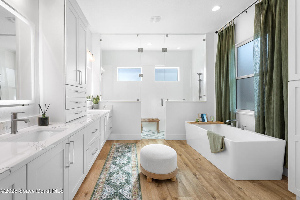 TO BE BUILT - Custom modern farmhouse built to impress with its open layout & beautiful views of the pond. This plan features 3 bedrooms, large bonus room with closet , 3 bathrooms, an office and a over sized 3-car garage. Spacious great room plan with 12' ceilings in the living areas, 10' sliders in the great room, wood look tile floors, custom kitchen with Cambria quartz countertops, natural gas appliances, Hurricane impact windows & sliders, tile roof, Master suite features spa like bathroom with large shower & free standing soaking tub, private bidet & toilet area. There is room to add a pool! Located in one of Viera's most sought out gated communities. This community is inspired by nature with lots of mature trees and walking paths. Close to A-rated schools, less than a mile from Viera Hospital, tons of shopping, new Costco & less than 20 minutes from beach. Pictures are artist renders & professional photos of Aripeka model not actual home. Estimated completion October 2026.