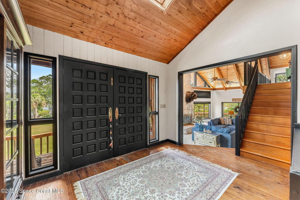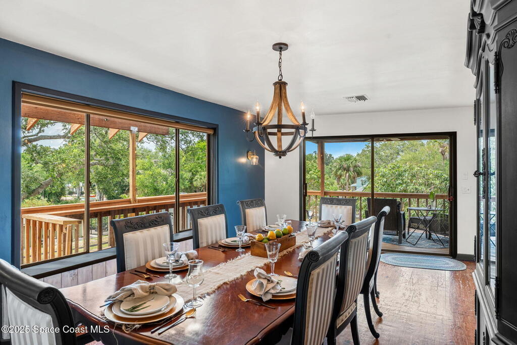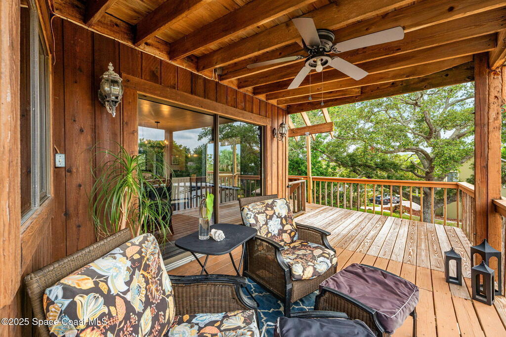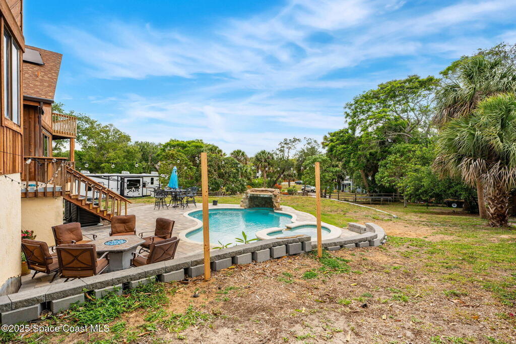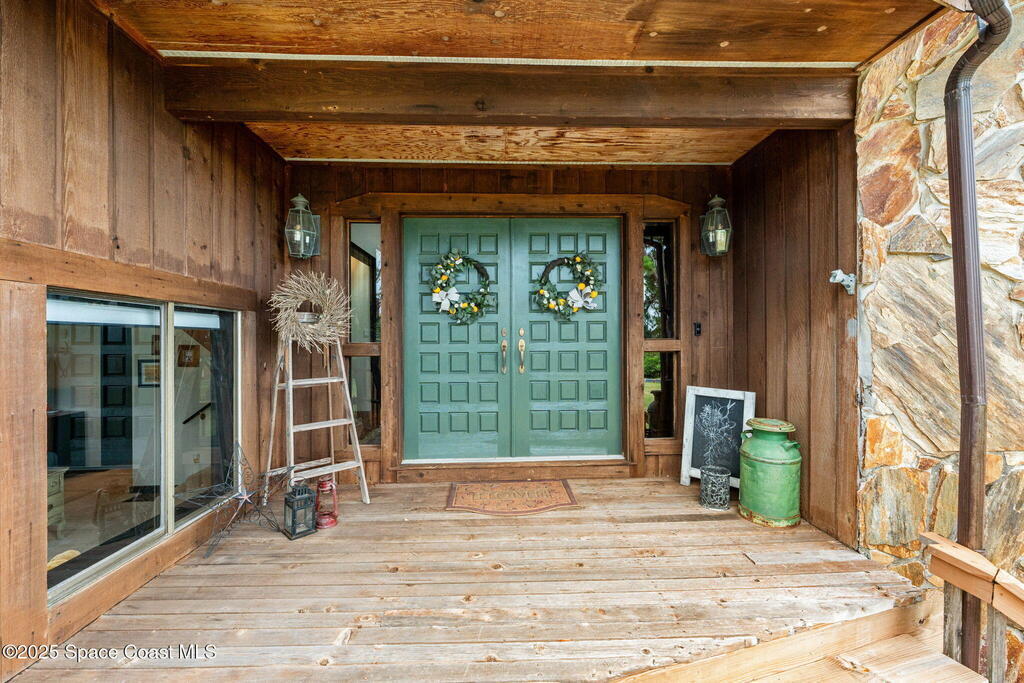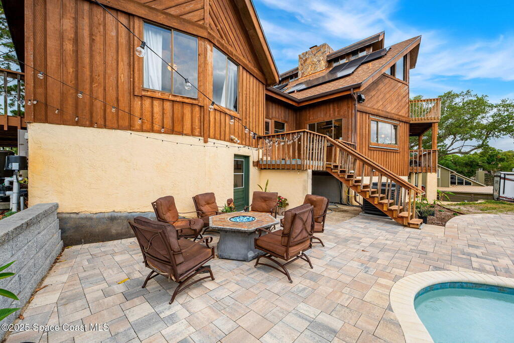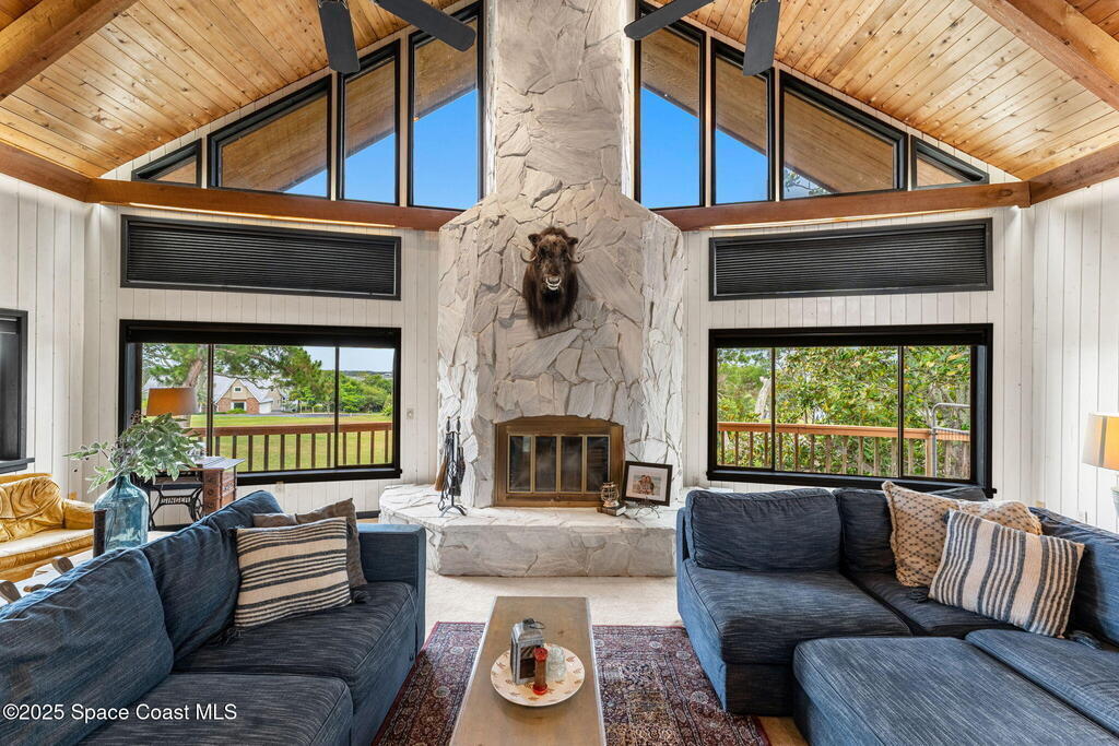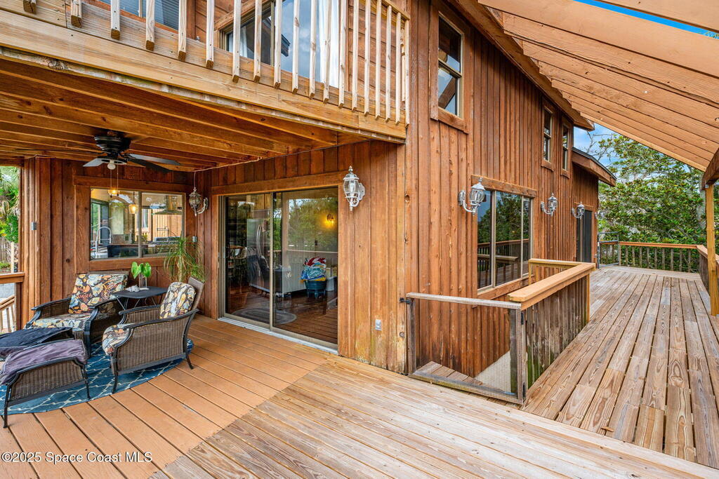 Assumable 2.375% VA $750,000 Mortgage . Tucked away on a full acre in the exclusive Still Water Subdivision of South Merritt Island, this custom cedar home offers rare privacy and natural beauty. Surrounded by towering oaks and set atop one of the island's highest elevations in the historic Georgianna area, the 3-level beautiful estate A fully remodeled kitchen adds modern style, while three wood-burning fireplaces bring warmth and charm. The layout includes a third-floor master retreat, two bedrooms and main living on the second level, and a private guest/in-law suite on the ground floor--ideal for multigenerational living. Soaring ceilings and rich wood details create a comfortable, inviting feel. Step outside to your private pool or enjoy Honeymoon Lake's community dock across the street with direct access to the Indian River. Just 15 minutes from the beach and close to the Cape, PAFB, and Melbourne--this one-of-a-kind estate blends space, seclusion, and timeless character