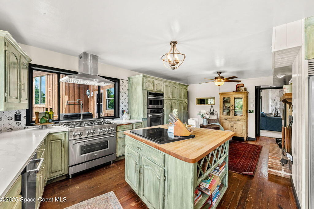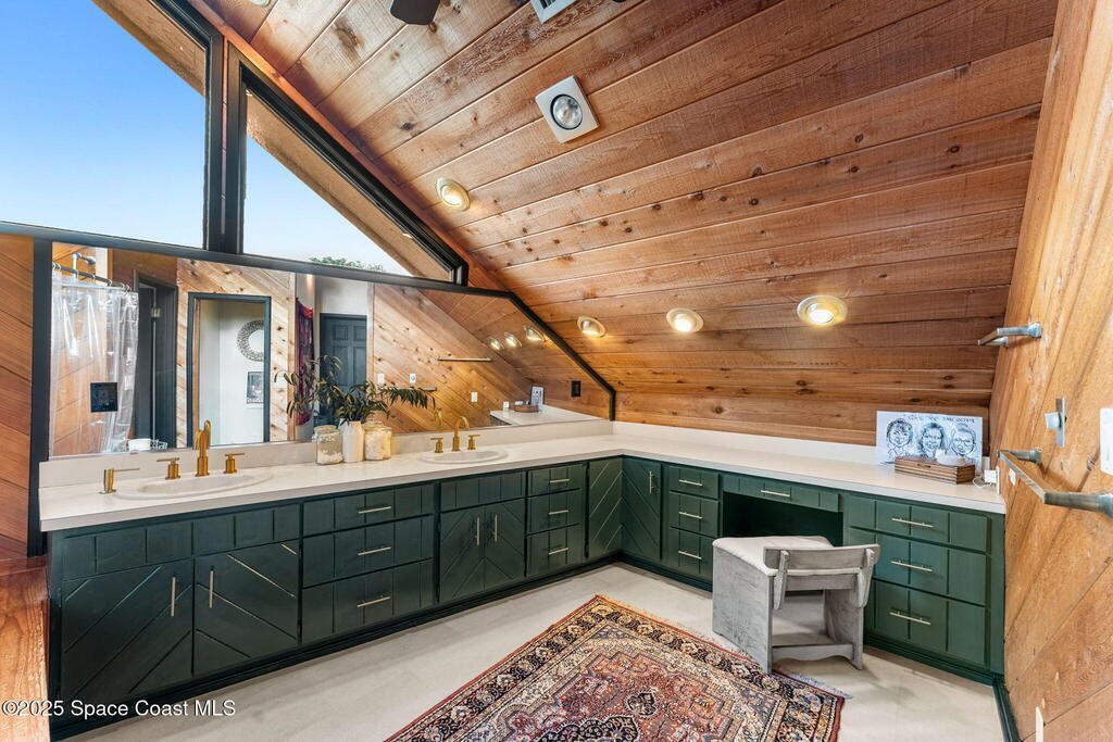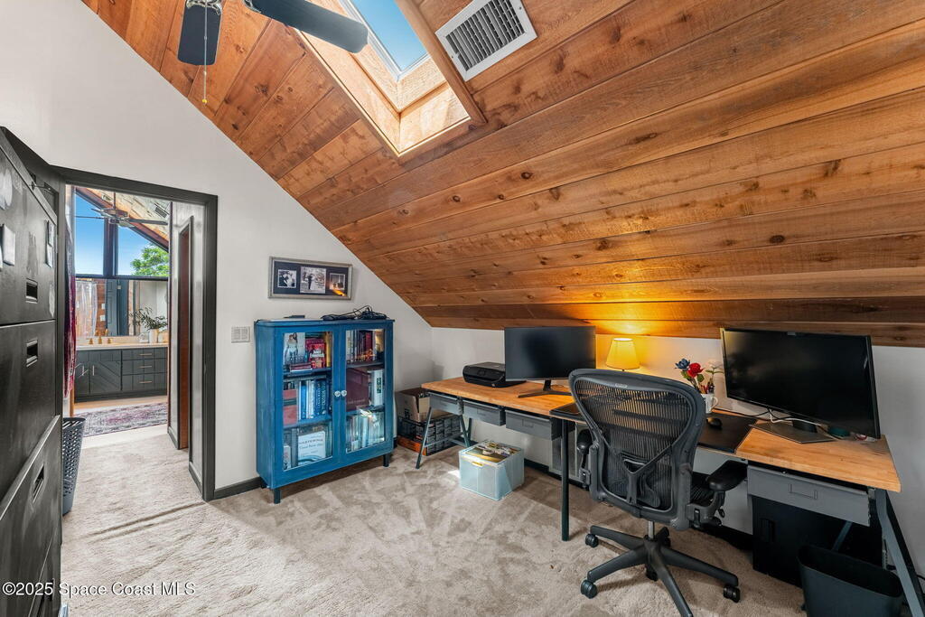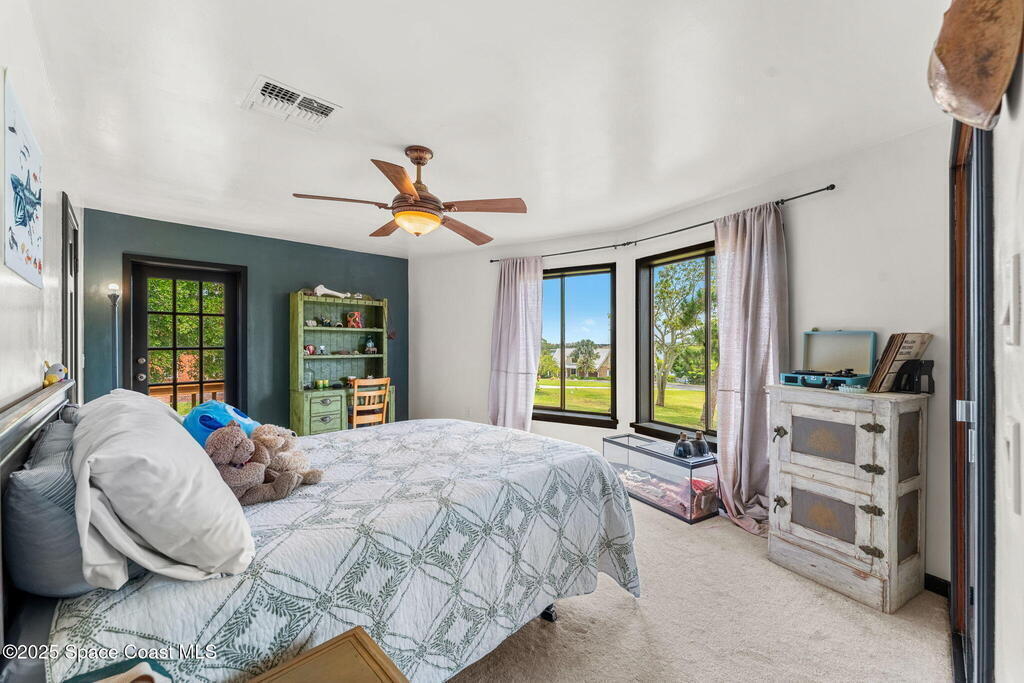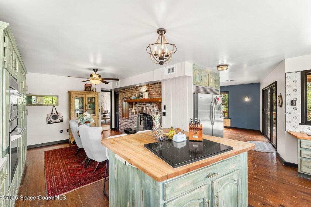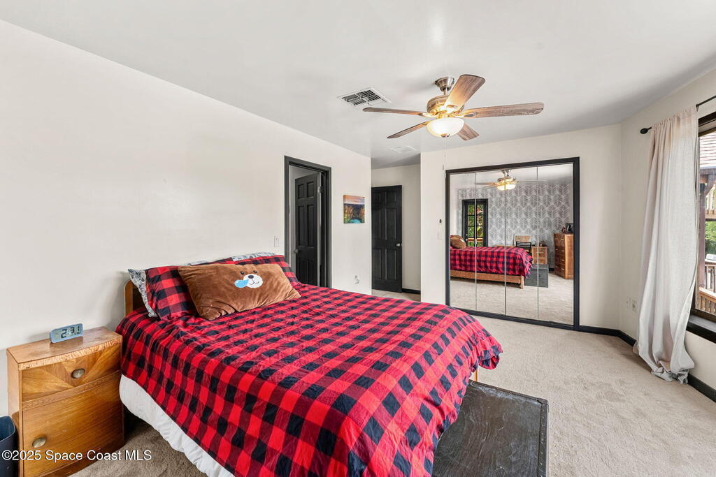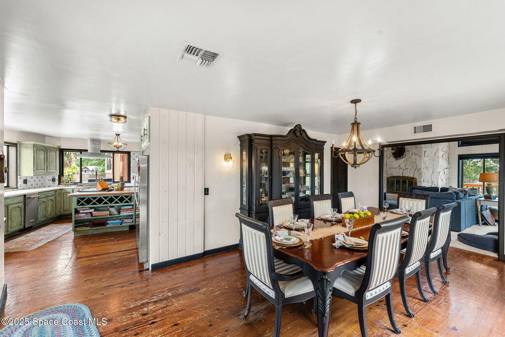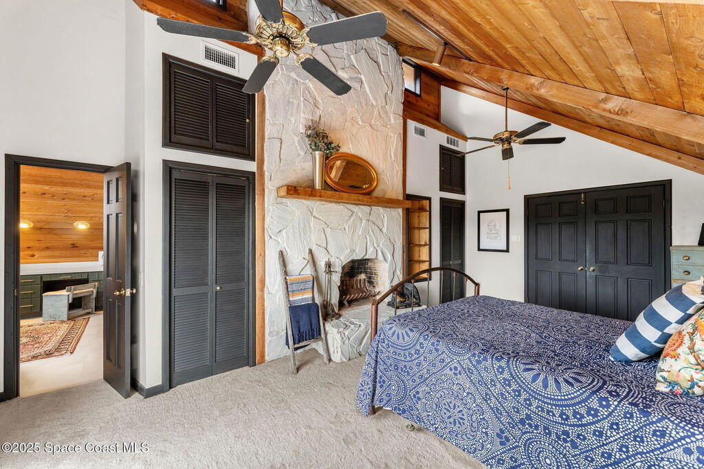 Assumable 2.375% VA $750,000 Mortgage . Tucked away on a full acre in the exclusive Still Water Subdivision of South Merritt Island, this custom cedar home offers rare privacy and natural beauty. Surrounded by towering oaks and set atop one of the island's highest elevations in the historic Georgianna area, the 3-level beautiful estate A fully remodeled kitchen adds modern style, while three wood-burning fireplaces bring warmth and charm. The layout includes a third-floor master retreat, two bedrooms and main living on the second level, and a private guest/in-law suite on the ground floor--ideal for multigenerational living. Soaring ceilings and rich wood details create a comfortable, inviting feel. Step outside to your private pool or enjoy Honeymoon Lake's community dock across the street with direct access to the Indian River. Just 15 minutes from the beach and close to the Cape, PAFB, and Melbourne--this one-of-a-kind estate blends space, seclusion, and timeless character