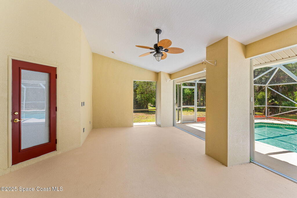 ****Seller willing to contribute towards buyers closing costs/pre-paids or buy down interest rates-Bring all offers!***Welcome to your private retreat in the heart of Grant-Valkaria! This beautifully maintained- 3-bedroom, 2-bathroom, with flex space, pool home offers the perfect blend of comfort, space, and outdoor living. Nestled on 1.17 acres of property featuring a sparkling screened-in pool, ideal for enjoying Florida's year-round sunshine. Step inside to find a spacious, open-concept layout with vaulted ceilings and natural light pouring in through large windows. The kitchen is equipped ample counter space, and a breakfast bar that opens to the living area, perfect for entertaining. Outside, enjoy plenty of room to roam, garden, or even bring your toys--there's space for RV or boat parking with no HOA restrictions! Located just minutes from the Indian River, boat ramps, and and nature preserves. Home has all the upgrades Roof 2023, Hotwater, AC, Septic and MORE!