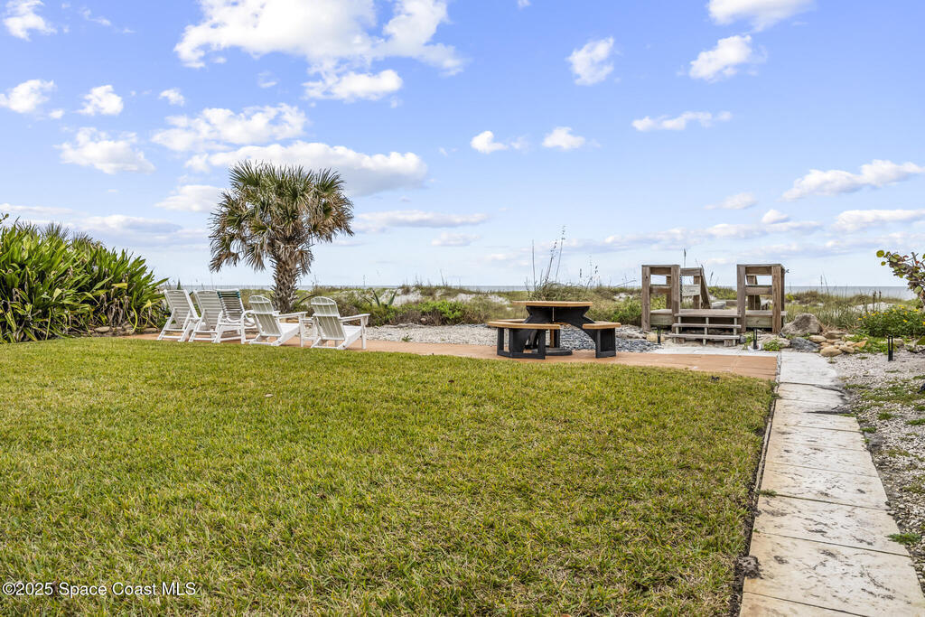 Don't miss this opportunity to have beachfront property for less than $1M! Gorgeously renovated ground floor oceanfront condo unit with 2 bedrooms and only steps to the white sandy beaches of the Atlantic Ocean. Enjoy morning sunrises from the ocean facing deck, take sunset strolls on the beach. Front row view of rocket launches from Cape Canaveral and only about an hour to Orlando area things to do. Condo community has ample parking for residents and guests. In the last 5 years the following upgrades have occurred: A/C, Storm Shutters, electrical panel, hurricane windows. (Because this is a two story condo, condo is exempt from recent reserve requirements).