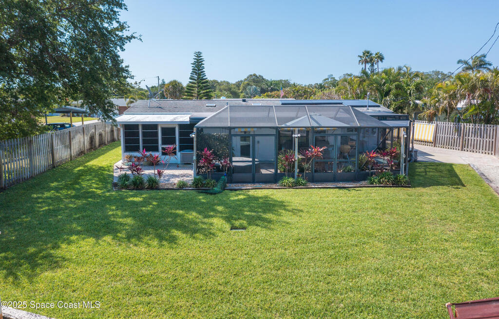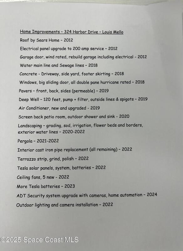 Charming Beachside Home with Modern Upgrades and Classic Florida Style.Discover this beautifully maintained 3-bedroom, 1-bath home with room to grow! Home is located in a sought-after beachside neighborhood. This residence perfectly blends classic Florida charm with modern conveniences, offering both comfort and efficiency.Inside, you'll find terrazzo floors and retro pine cabinetry. A few updates include energy-efficient, hurricane-rated windows, a 200-amp electrical panel, and a solar panel system to help reduce energy costs. ADT system, professionally landscaped, Convenient deep-well irrigation system, custom Pergola offering a welcoming shaded outdoor space. Short distance to Peacock Beach, Cruise Port Canaveral, Kennedy Space Center, MCO, Patrick Space Force Base. Don't miss out on this opportunity to add to your dream home and sweet location.