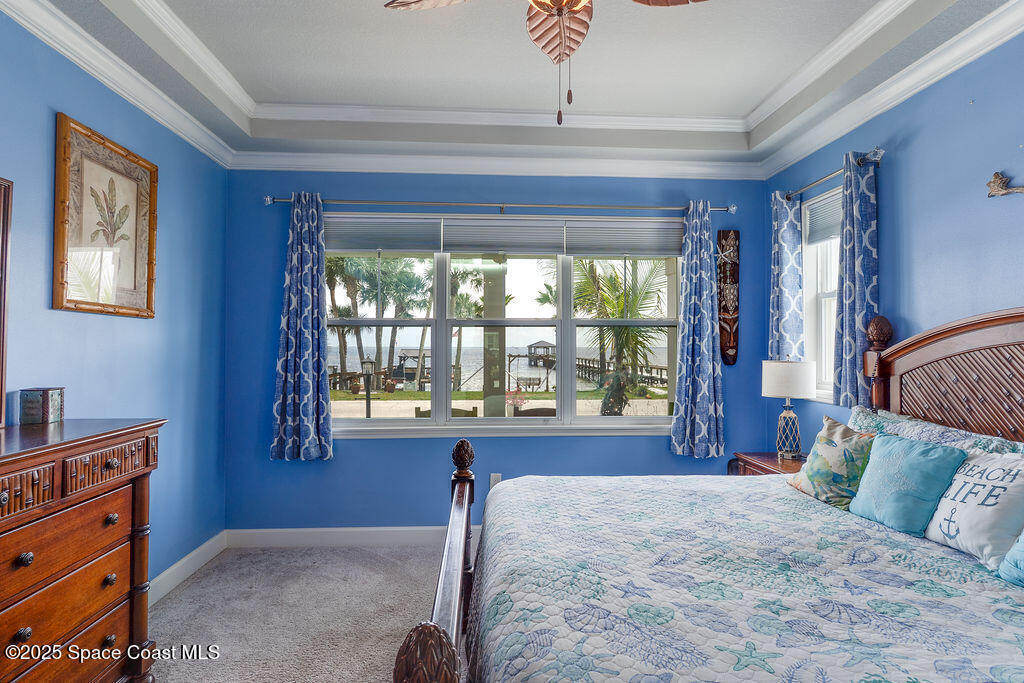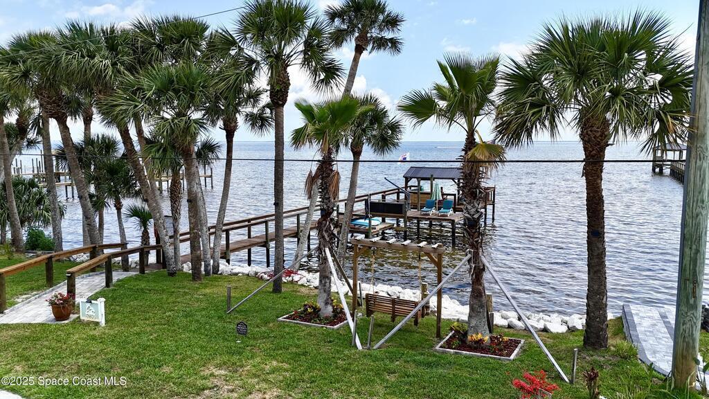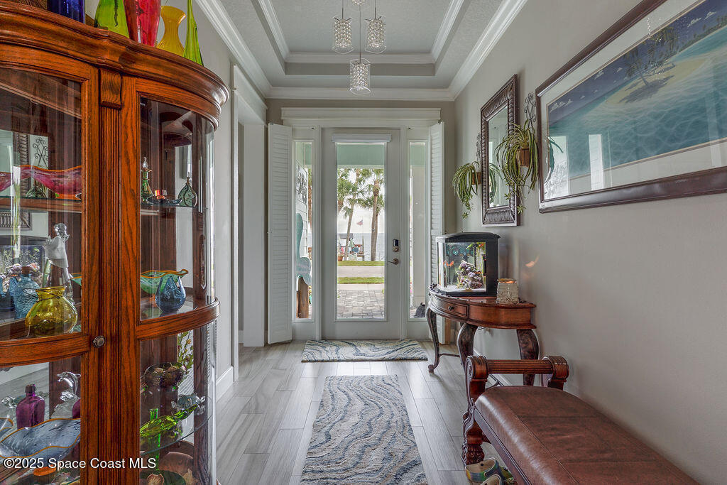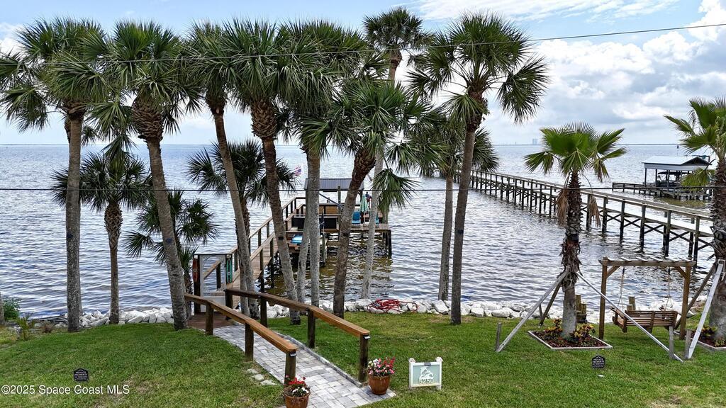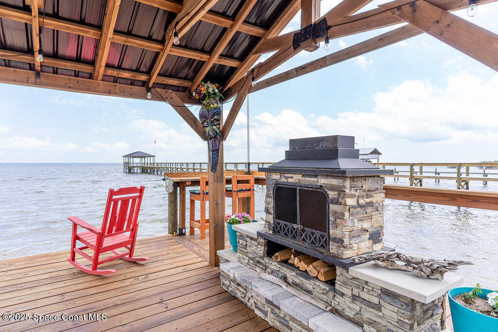 Live the Space Coast Dream - Waterfront Luxury with Front-Row Rocket Views! Enjoy direct access to the Indian River and watch rocket launches from your own front porch in this stunning 4-bedroom, 3.5-bath waterfront home. Property features 75 feet of river frontage, a fully restored shoreline, and a double dock--perfect for boating, kayaking, or just relaxing by the water. The gourmet kitchen includes a gas range and flows into a bright, open living space with river views. A spacious apartment/bonus room above the garage provides the perfect retreat for guests, in-laws, or teens. Key Features: 4 bedrooms | 3.5 bathrooms | Bonus room, 75 feet of Indian River frontage, Private dock with wood burning fireplace, restored shoreline and double slips, Gourmet kitchen with gas range, Two built-in electric fireplaces, Crown molding and custom door surrounds, Expanded paver driveway and walkways