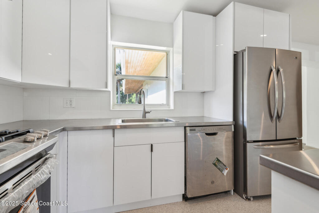 Owner is an agent. No solicitations.Old Florida charm meets clean modern appeal. This complete renovation on a classic old Melbourne home is a must see. The huge back porch with beadboard ceilings overlooks the 3/4 acre lot and is reminiscent of a state park setting. Combined with the new or refurbished white marble terrazzo floors, vaulted ceiling and a sleek new stainless steel kitchen creates a welcoming place to call home. New electric, new plumbing, new gas lines, new steel roof, new driveway and new foam insulation ensures no problems for many years to come. Current air conditioning system is working great but is dated. $5000 buyer credit is offered for full price offer to account for air conditioner age and any other discrepancies of inspection. Interior color palette is white, off-white, stainless steel and driftwood throughout.