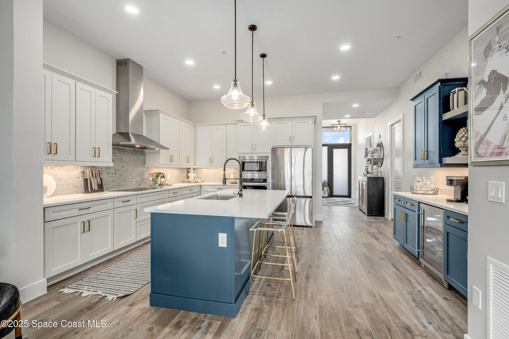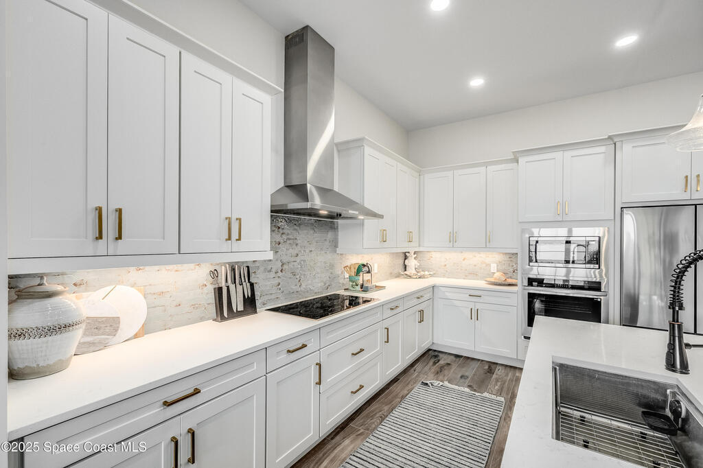 Equipment/Appliances: Convection Oven, Dishwasher, Disposal, Double Oven, Electric Cooktop, Electric Water Heater, Refrigerator, Washer/Dryer Stacked and Wine Cooler