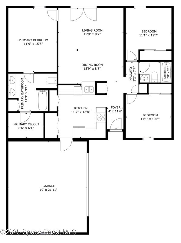 Enter into this cozy 3 bedroom 2 bath, 2 car garage! Spacious kitchen with pass thru to dining area, tile floors, plat shelves, double pantry and all the appliances. Living/Dining Room Combinations perfect for entertaining. Sliders lead to the back yard. The large primary bedroom with ensuite features Double sinks, tile floors, walk in closet and a tub/shower. Secondary bedrooms are equipped with ceiling fans. Hall Bath with single sink and tile flooring. 15 minutes from beautiful Cocoa Beach, beaches and 8 minutes from highway 95! Call for your private showing today!