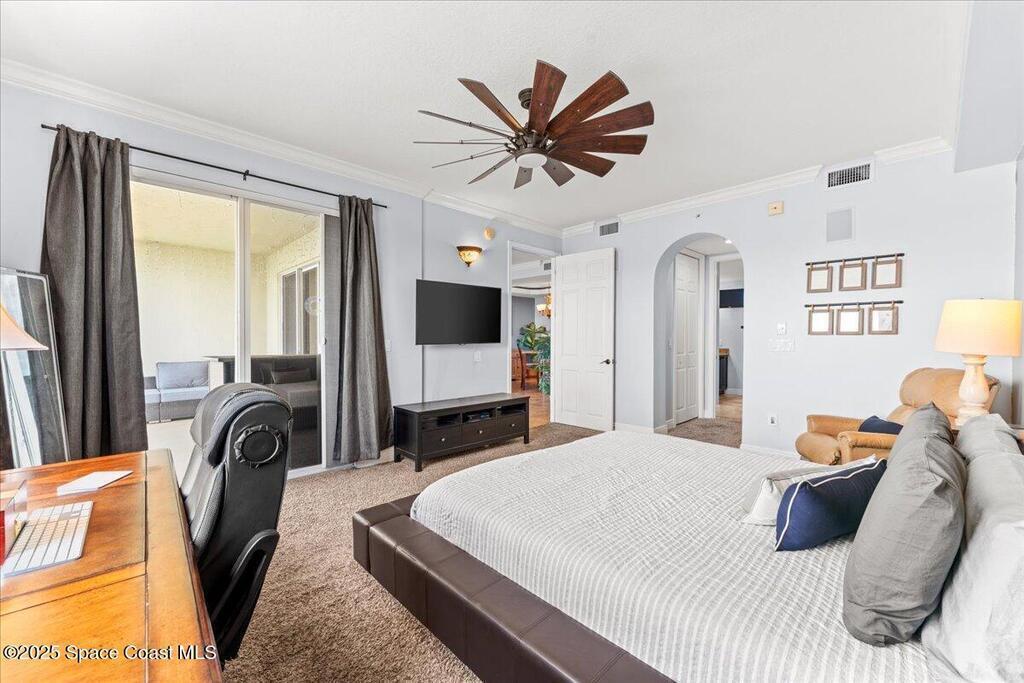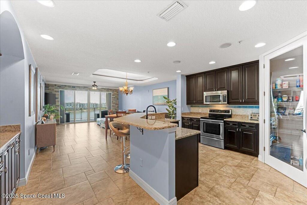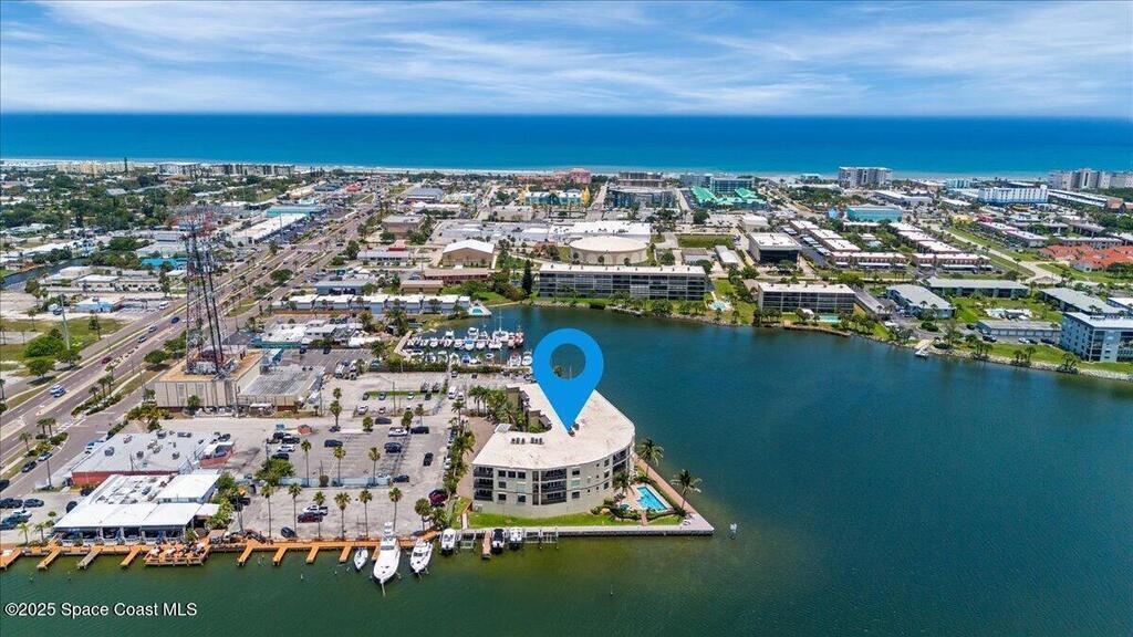 Top floor condo with stunning sunset views over looking the Banana River, right in the heart of Cocoa Beach. Walk to the beach, Ron Jon Surf Shop, and dozens of restaurants. Located in a boutique waterfront community with over 500 feet of shoreline, pool, spa, and gym. The open-concept unit features spacious kitchen, granite countertops, stainless appliances, and ample storage. Travertine-style tile and hurricane-impact windows/doors throughout. A 12 foot slider opens to an oversized balcony, perfect for riverfront entertaining. The large primary suite offers balcony access, his/her closets, and spa like bathroom. Two guest bedrooms, a full guest bath, and indoor laundry add convenience. A rare find - this unit includes private, deeded two car garage. Live the Florida lifestyle!