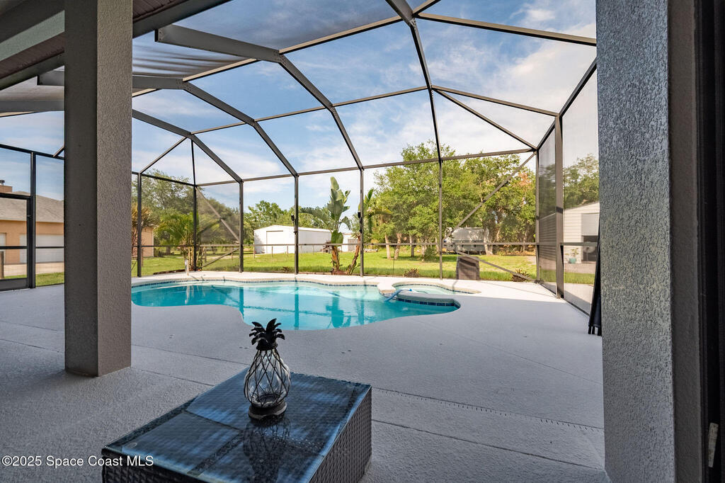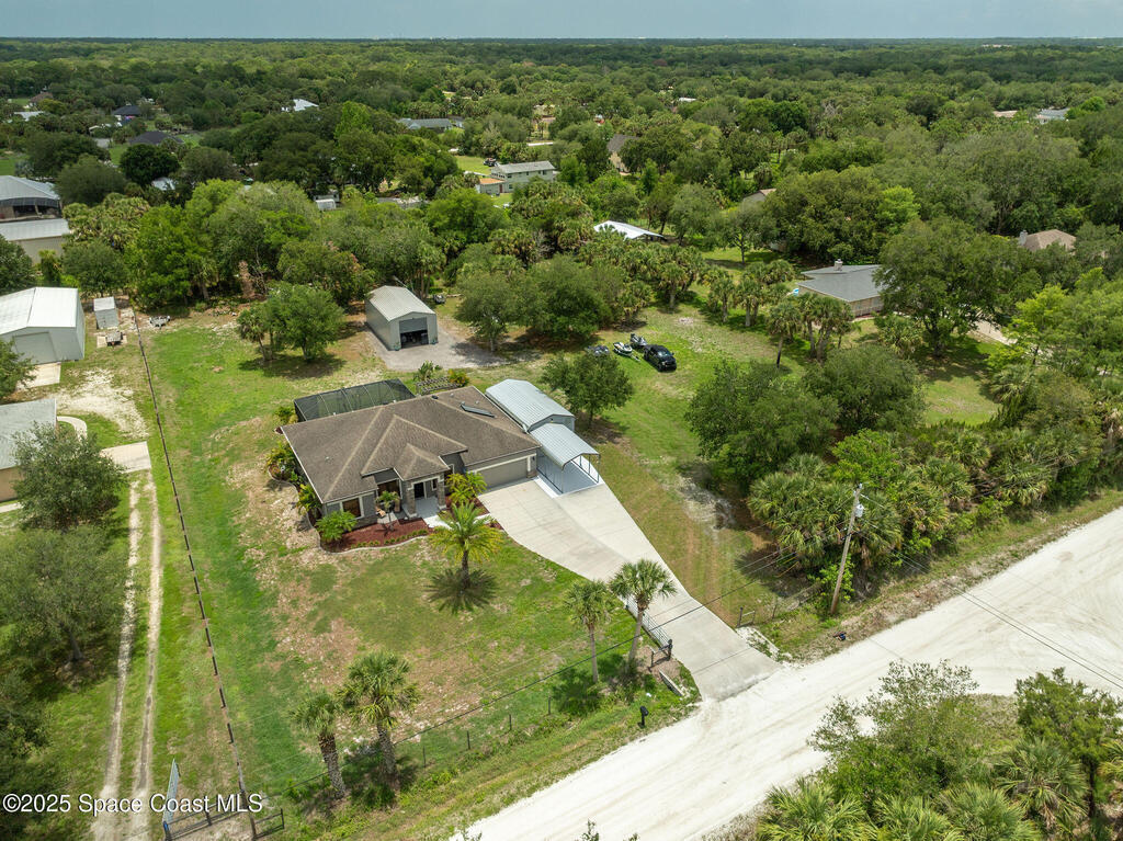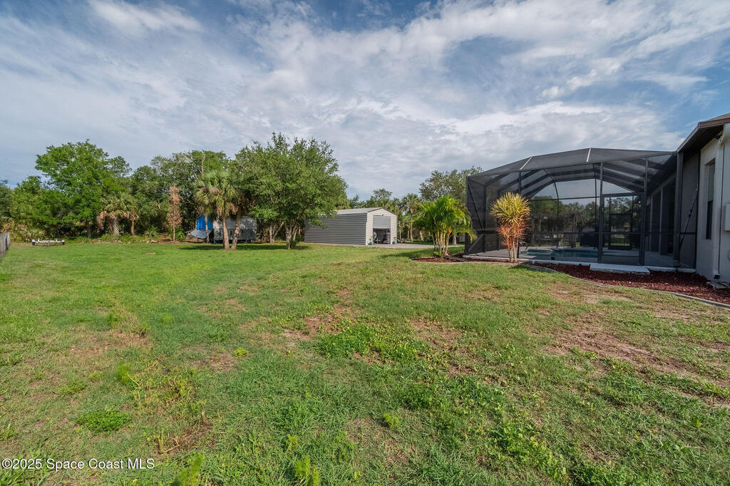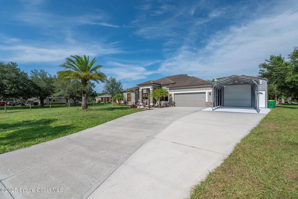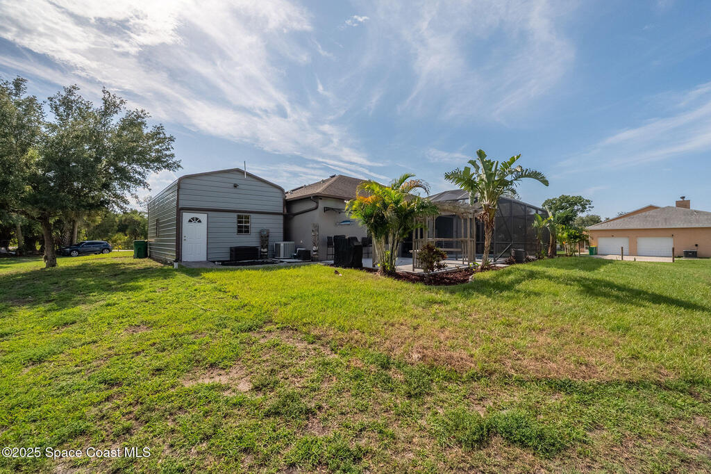 Built in 2013 and meticulously maintained, this unique property is packed with features that cater to both relaxation and recreation. The screened-in pool offers the perfect retreat for sunny Florida days, while the oversized covered parking is ideal for your RV, boat, or other toys. A detached side building--already equipped with power and water--is currently being used as a gym and workshop, but it's flexible enough to be transformed into a guest suite, hobby studio, or whatever suits your lifestyle. Situated on a spacious lot with no HOA, there's plenty of room to spread out and customize the space to make it truly your own. Whether you dream of adding a garden, expanding your storage, or creating an outdoor entertainment area, this property gives you the freedom to do it all. Located in the peaceful Canaveral Groves area, you'll enjoy a country-like feel with the convenience of nearby amenities and easy access to major roadways.