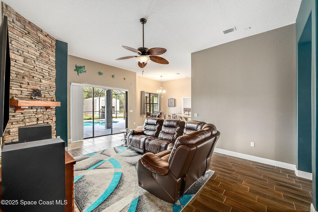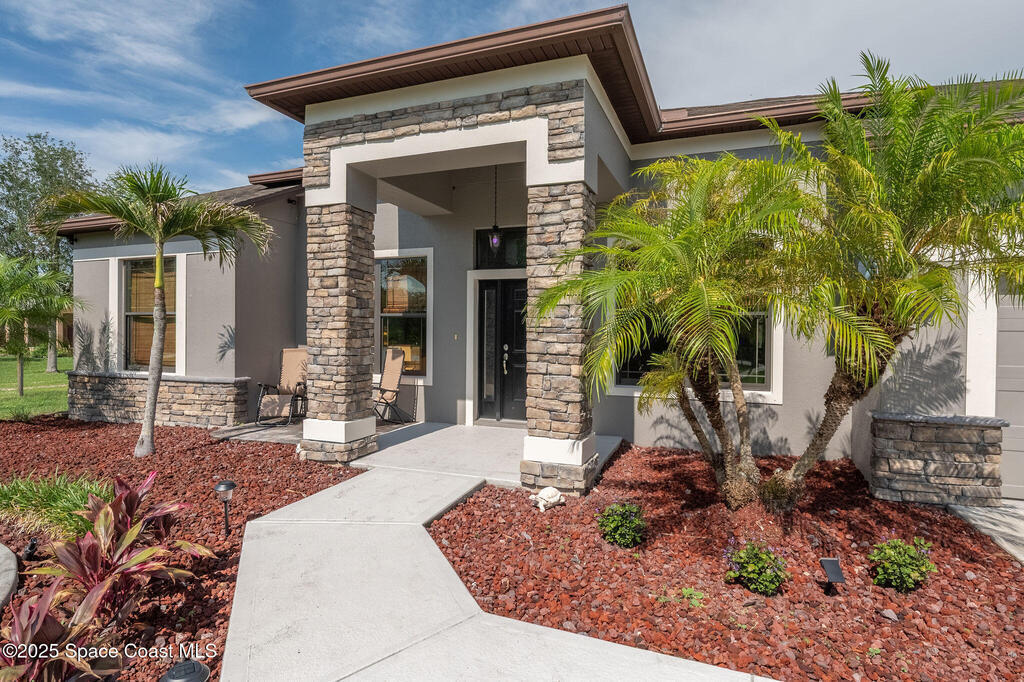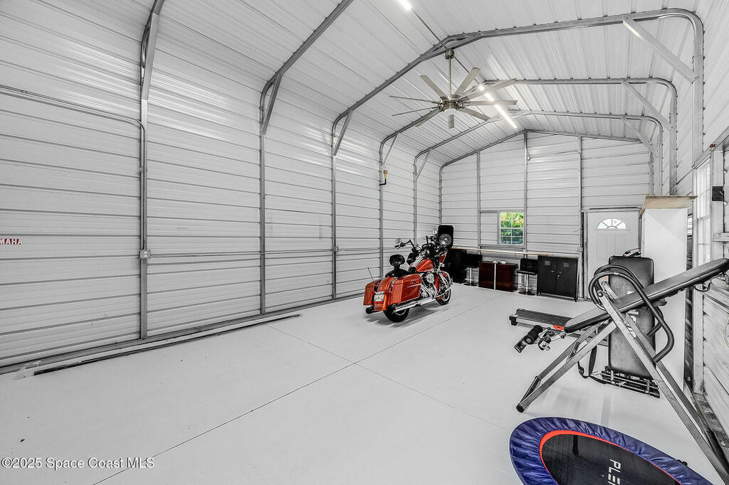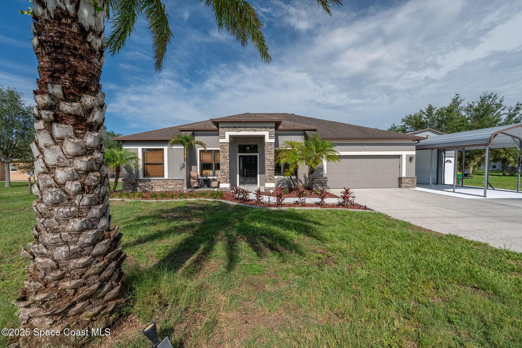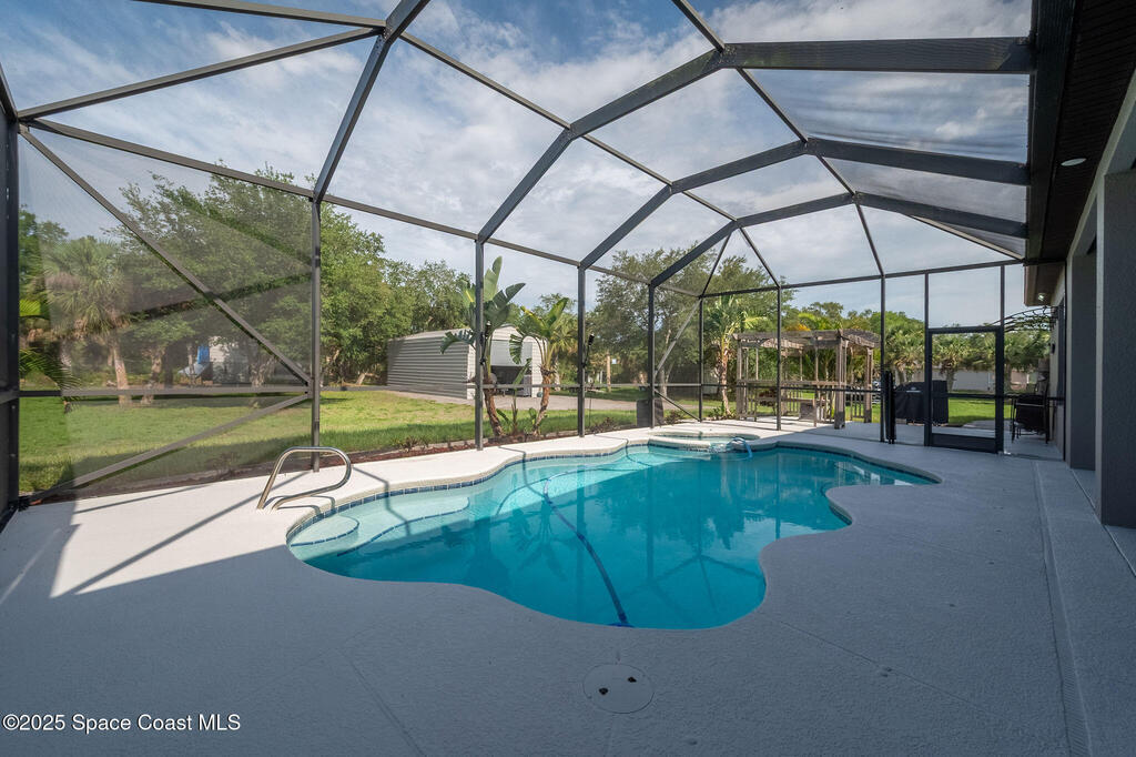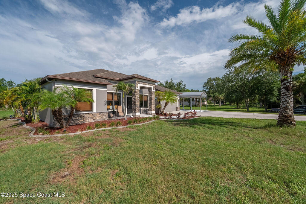Built in 2013 and meticulously maintained, this unique property is packed with features that cater to both relaxation and recreation. The screened-in pool offers the perfect retreat for sunny Florida days, while the oversized covered parking is ideal for your RV, boat, or other toys. A detached side building--already equipped with power and water--is currently being used as a gym and workshop, but it's flexible enough to be transformed into a guest suite, hobby studio, or whatever suits your lifestyle. Situated on a spacious lot with no HOA, there's plenty of room to spread out and customize the space to make it truly your own. Whether you dream of adding a garden, expanding your storage, or creating an outdoor entertainment area, this property gives you the freedom to do it all. Located in the peaceful Canaveral Groves area, you'll enjoy a country-like feel with the convenience of nearby amenities and easy access to major roadways.