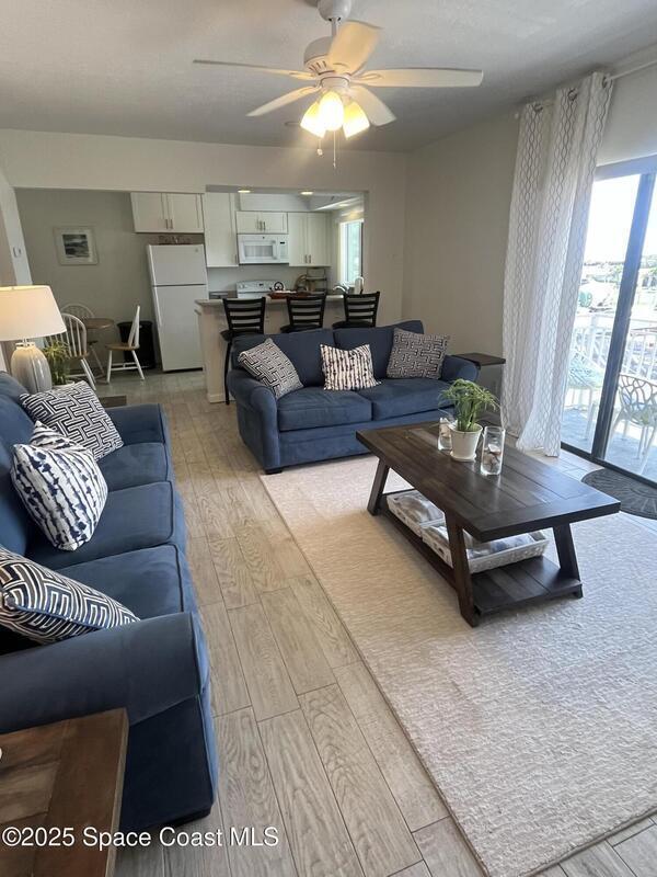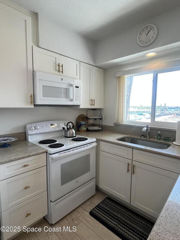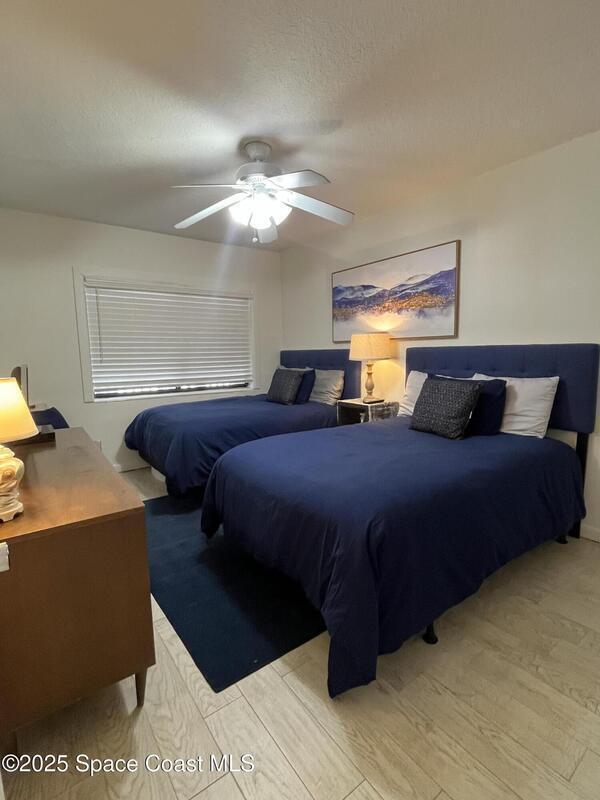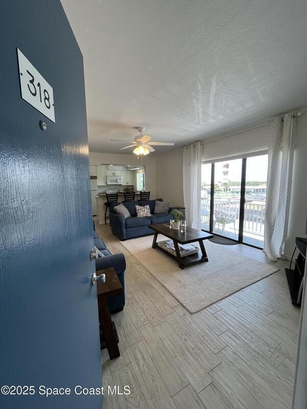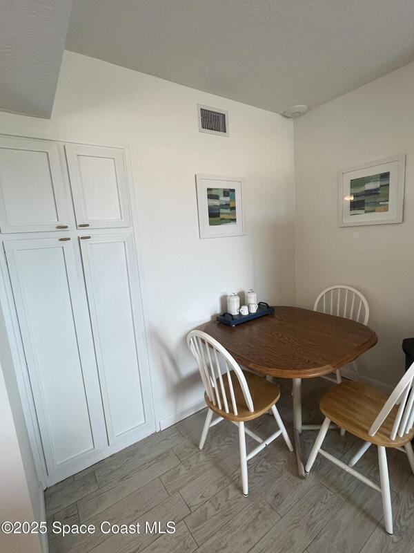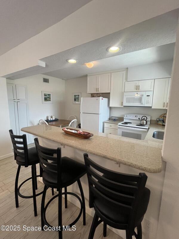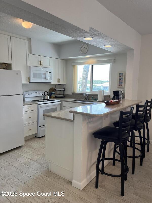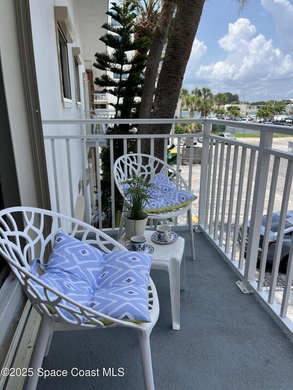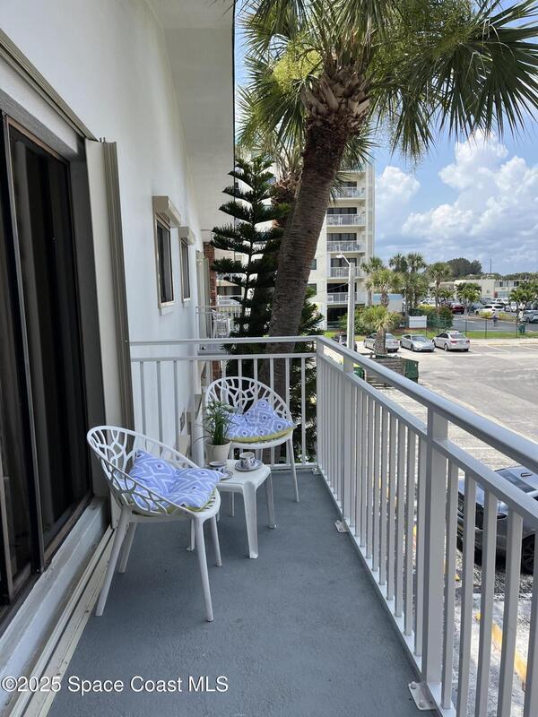 Oceanfront Building, Corner Unit w/ private balcony! - Weekly & Monthly Rentals Allowed! Discover this hidden gem nestled directly on the sands of Cocoa Beach. This rare corner unit offers a private balcony off the living room, perfect for relaxing and enjoying the ocean breeze. Turn key w/ all furnishings. Featuring a light and bright interior, tile throughout, updated kitchen w/ quartz countertops, this unit sleeps six comfortably and comes equipped with accordion hurricane shutters on both the sliding glass door and kitchen window for added peace of mind. The monthly fee includes all utilities (including A/C via chiller system), A/C maintenance, exterior doors/windows, hurricane shutters, building insurance, and on-site management with a live-in manager. Located just minutes from Patrick Space Force Base, Port Canaveral (cruise terminals), Kennedy Space Center, and Cape Canaveral Space Force Station. This is a perfect beachside retreat or high-performing rental property