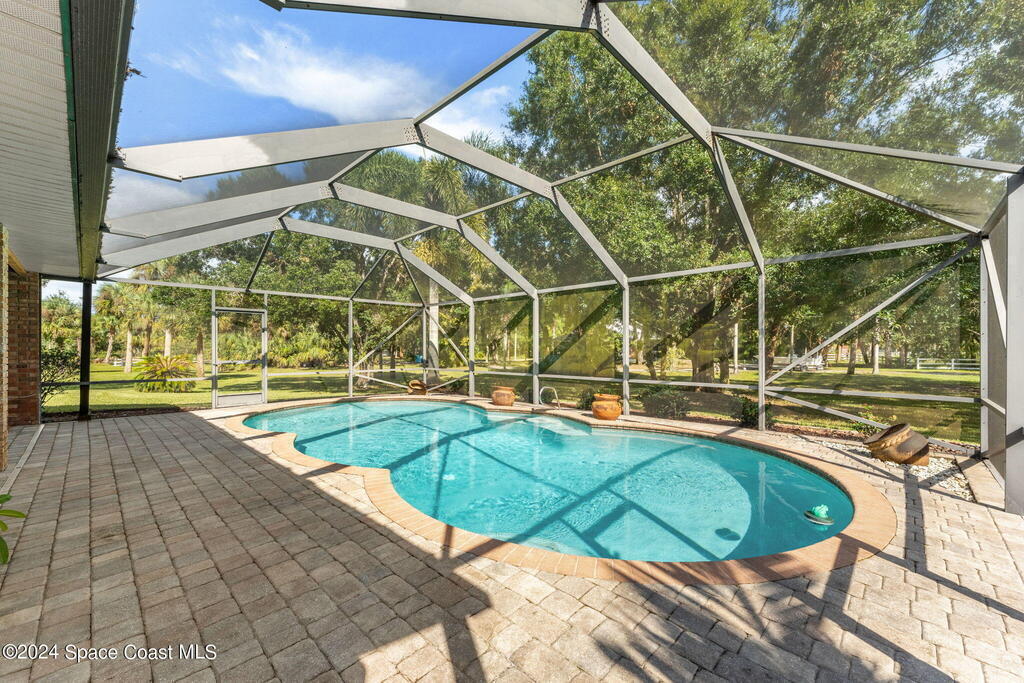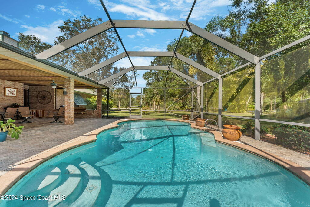 When land, design, and quiet collide--a rare kind of Florida living emerges. 1.3 acres of oak-shaded Florida ground, a brick fortress of a home, and the kind of quiet money can't buy. Inside this 3-bed, 3-bath knockout, vaulted ceilings stretch above a wood-burning fireplace, and Bruce hardwood floors run wall to wall. The kitchen pulls no punches--black granite, custom cabinetry, and chef-grade appliances ready for the real deal. A bay-window breakfast nook gives you a front-row seat to your private canopy, and the smart split layout brings balance: three full baths, a barn-doored primary suite with sage granite, walk-in shower, and land views that remind you what ownership feels like. Outside, it's pure Florida escape--a screened lanai with wood-beam ceiling, paver floors, and a pool tucked beneath the trees. Add an attached 2-car garage plus a detached one for tools, toys, or both. No HOA. No limits. Just space, freedom, and the rare peace of real property.