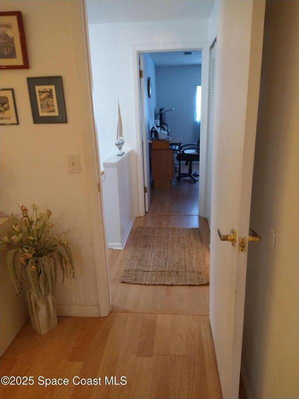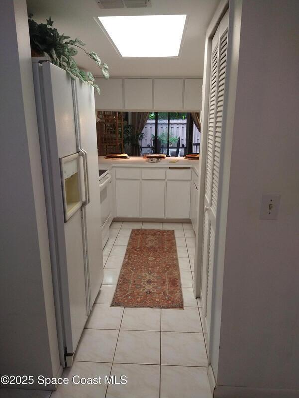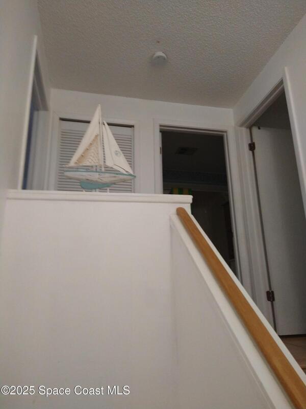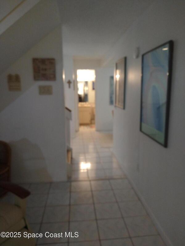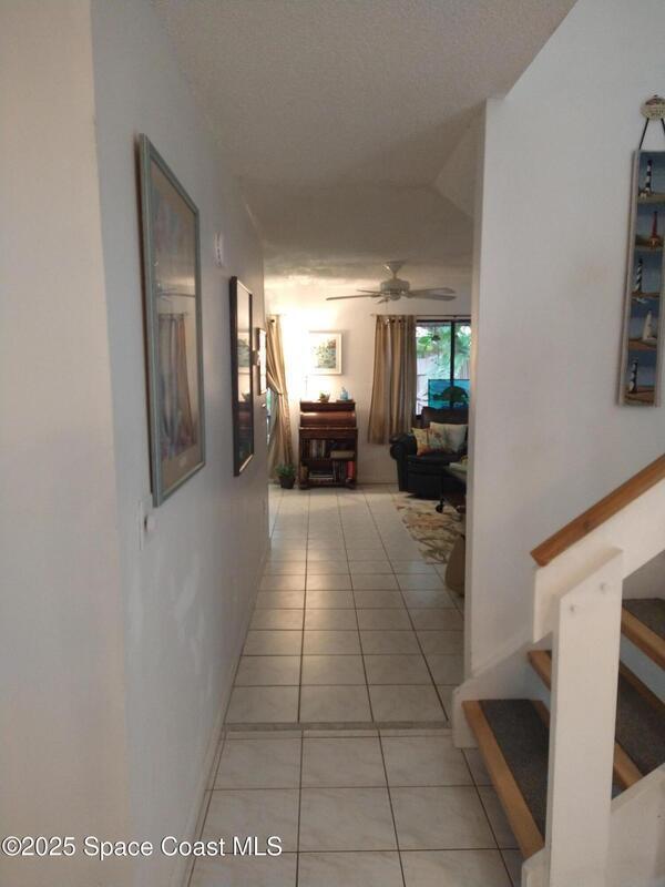 Tucked away in the desirable private gated community of Ocean Woods you will live under the palatial canopy of Stately oaks, meandering peacocks and lush tropical foliage, just steps from the Atlantic Ocean( there is a deeded access) you will feel like you're on vacation every day. Minutes to 528 for easy access to Orlando and destinations N or S via I95. Minutes to the expanding Canaveral Port, book your cruise now.This 2 story 2 bedroom 2 and a 1/2 bath unit is fully furnished and ready to move in and remodel slowly to create your own paradise. Community has 2 pools, tennis, racquetball and pickle ball courts and more. 2018 tile roof, Private attached 1 car garage and additional parking spot along with a a screened porch that over looks a private courtyard adds to the charm and function of this townhome. Don't miss out on living in this amazing community.