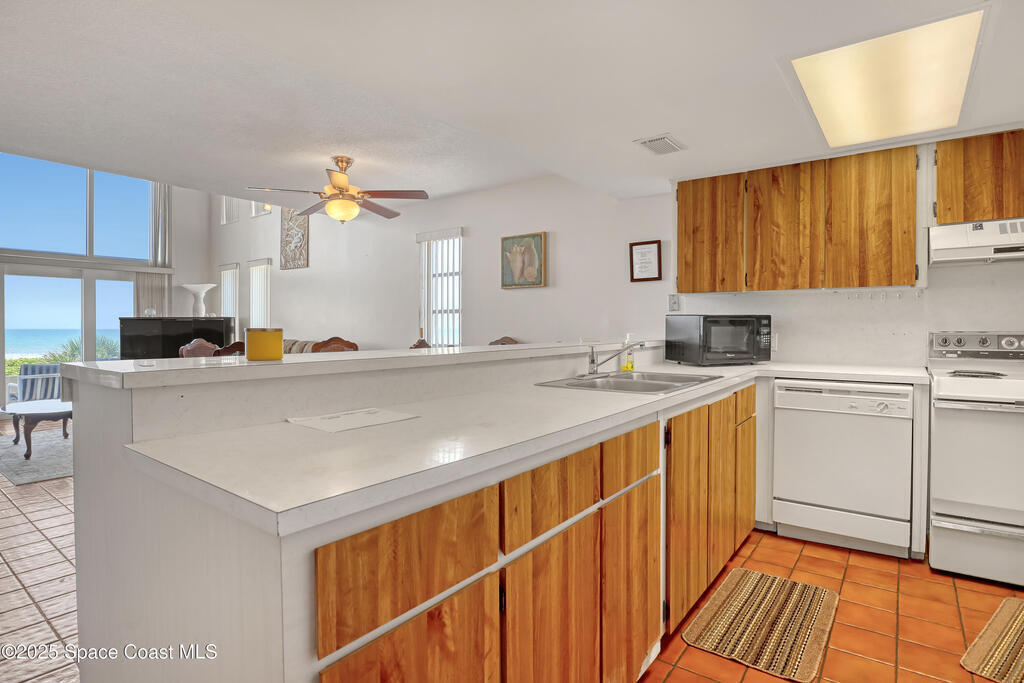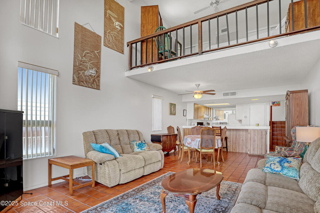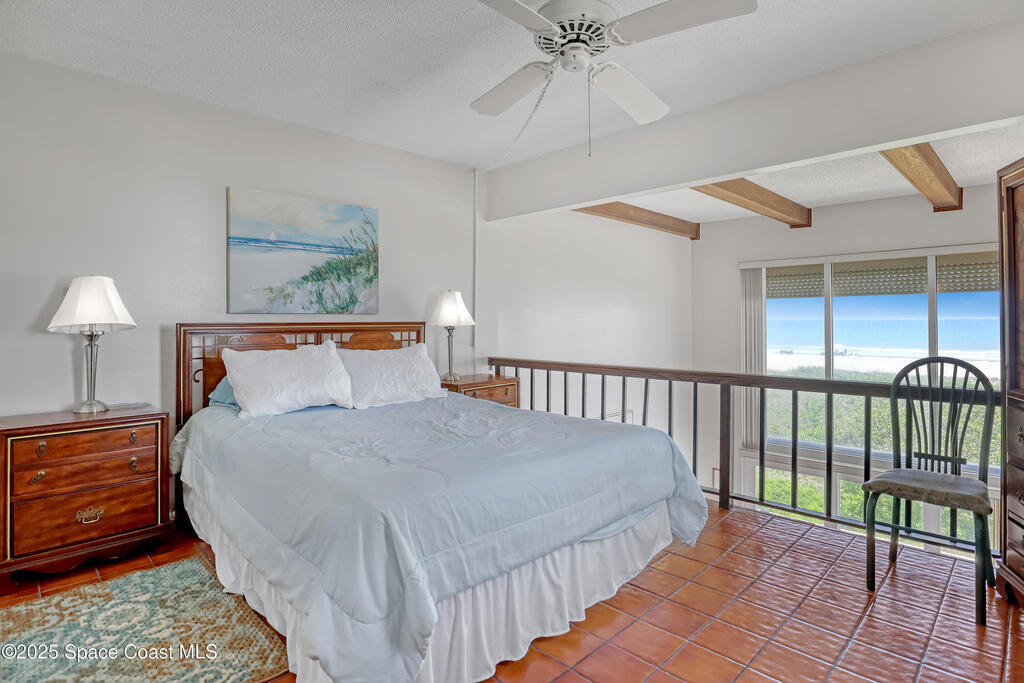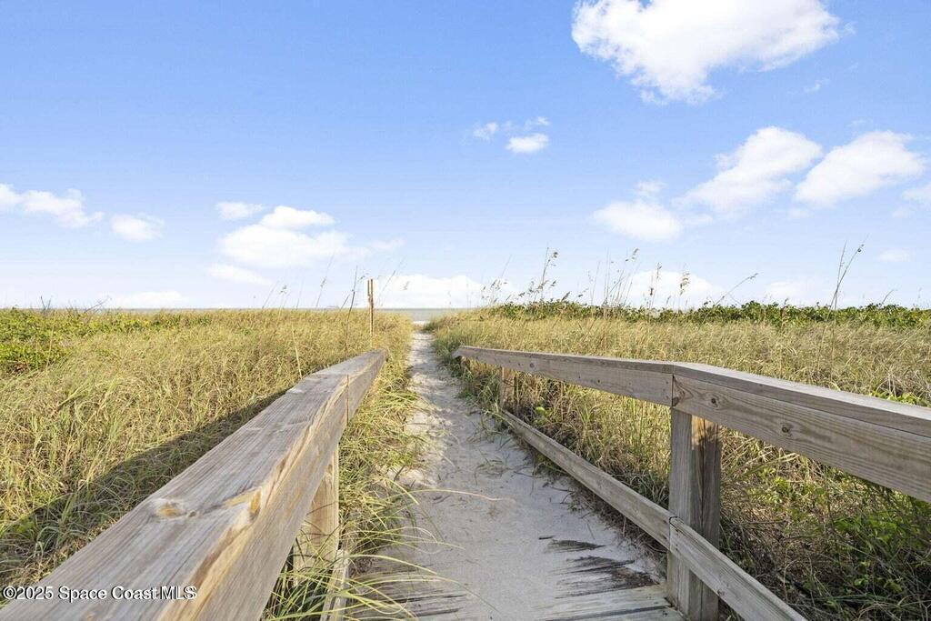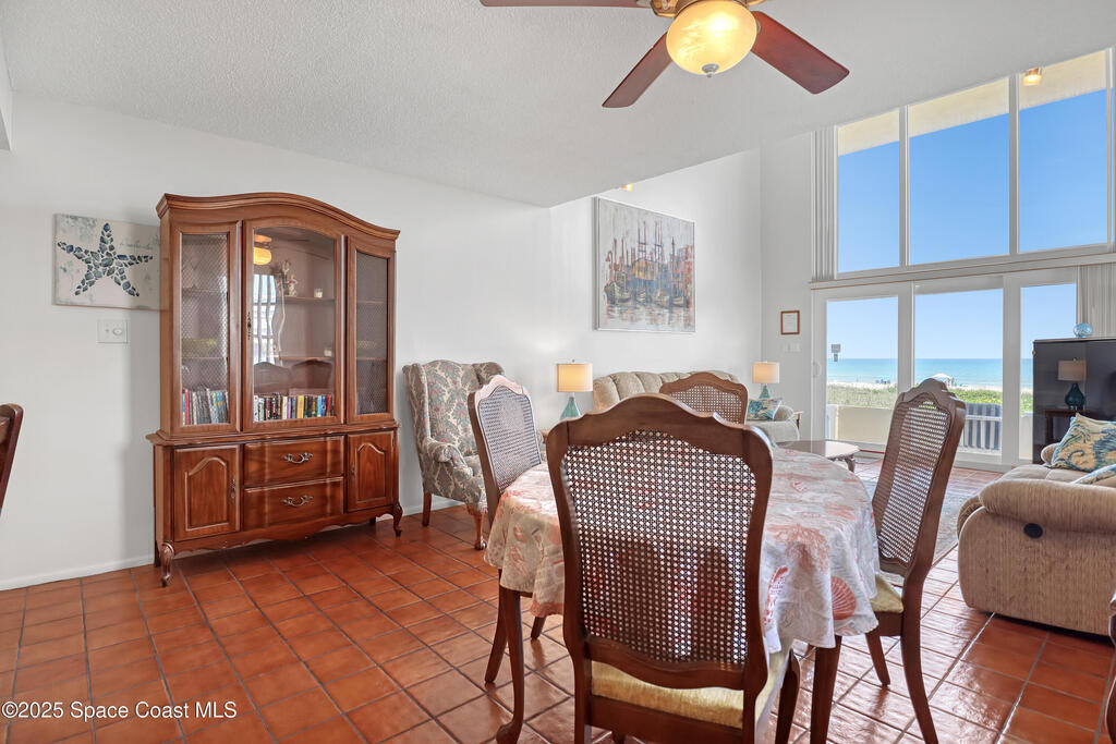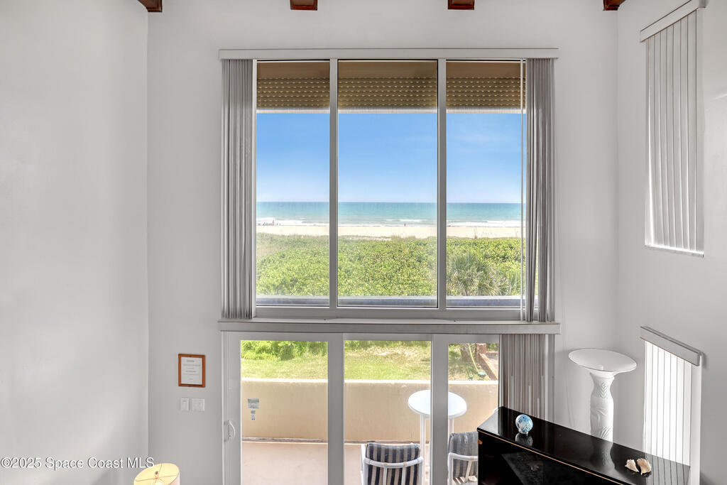 THIS COCOA BEACH DIRECT OCEAN FURNISHED CONDO boasts incredible floor-to-ceiling views of the Atlantic Ocean from main level and primary bedroom! This tri-level southeast facing corner unit has 2 large bedrooms, 2 full bathrooms, with 1 bedroom/bath on the main level, a private 1 car garage, in unit laundry room, and is vacation or rental ready as it's furnished! The open & bright condo has 3 spacious living levels, the main floor kitchen, dining and living areas have AMAZING VIEWS and a balcony to enjoy gorgeous sunrises, an evening cocktail while watching rocket launches, cruise ships and the famous Cocoa Beach Pier! You'll be front and center for the annual boat races, surfing Santas and other events hosted in the area! A great investment property, permanent residence or vacation home in a well-kept community with a sparkling clean pool & private beach access! Convenient walk to dining, shopping, bike to Port Canaveral in 10 min, MCO & theme parks 40 min!