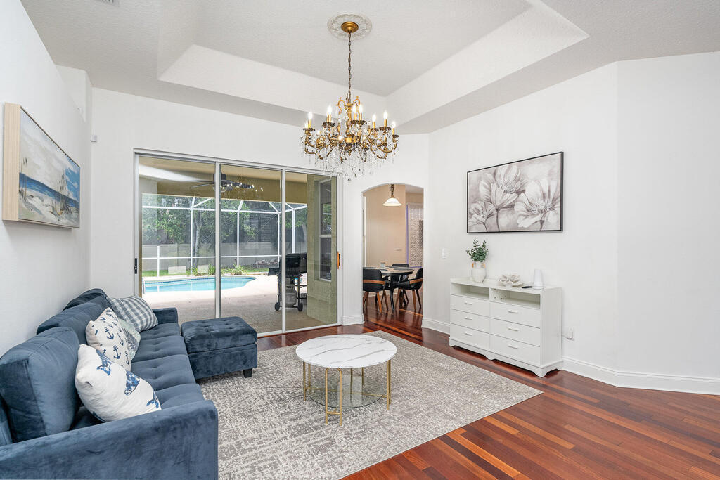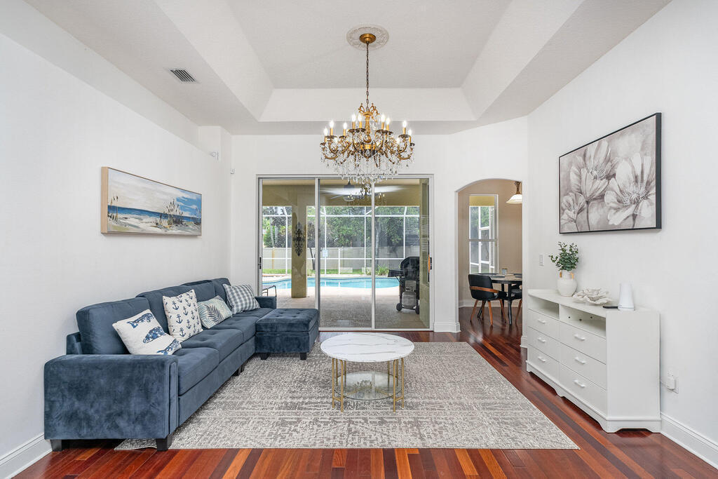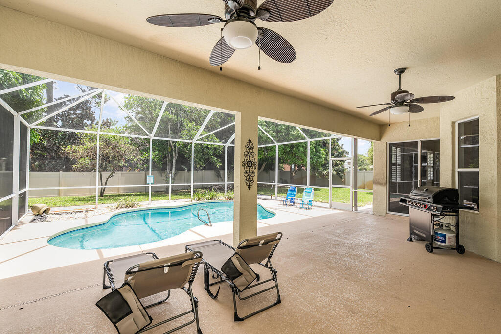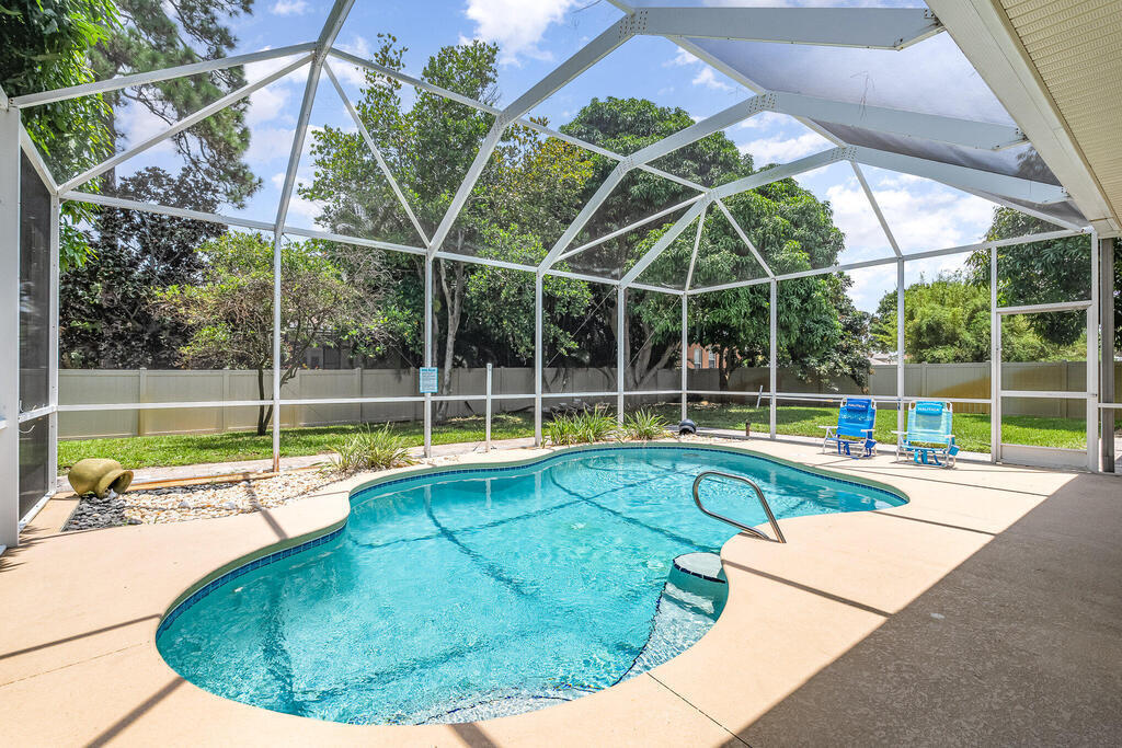 Exquisite updated 4 bedrooms, 3 bath pool home nestled in the Marsh Harbor community. Inside you will find a wonderfully open floor plan perfect for family gatherings and entertaining. The capacious Chef's Kitchen is stylishly equipped with double ovens, prep island, solid wood cabinets and ample storage. The contemporary living space is bursting with natural light and a flowing layout that is inviting and relaxing. Glass doors that provide a seamless transition from indoor to outdoor living. The screened enclosed pool provides ample space for idyllic outdoor living. Roof was replaced is 2018 and AC was installed in 2023.