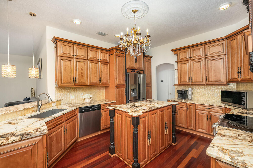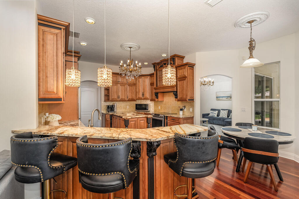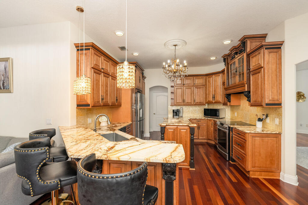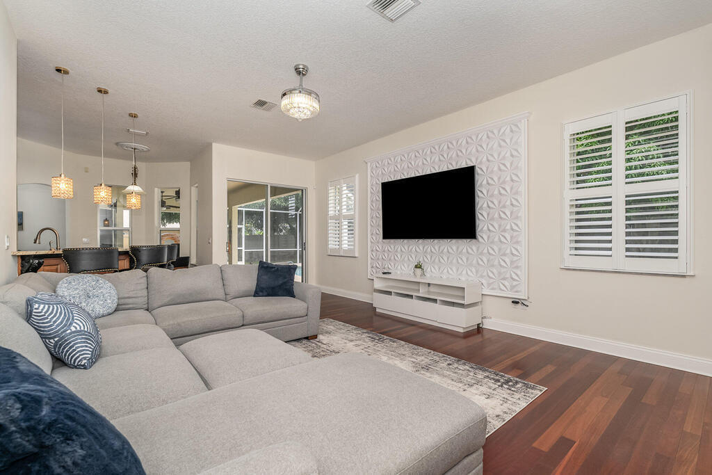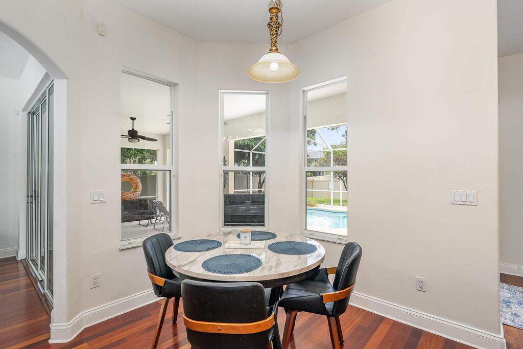 Exquisite updated 4 bedrooms, 3 bath pool home nestled in the Marsh Harbor community. Inside you will find a wonderfully open floor plan perfect for family gatherings and entertaining. The capacious Chef's Kitchen is stylishly equipped with double ovens, prep island, solid wood cabinets and ample storage. The contemporary living space is bursting with natural light and a flowing layout that is inviting and relaxing. Glass doors that provide a seamless transition from indoor to outdoor living. The screened enclosed pool provides ample space for idyllic outdoor living. Roof was replaced is 2018 and AC was installed in 2023.