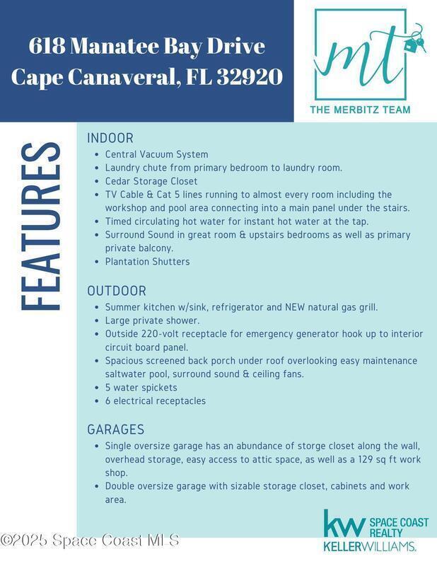 Welcome home! This custom estate is a hidden gem, tucked away in a peaceful waterfront community & meticulously maintained, offering the perfect blend of seclusion & convenience. Just min from the beach, Port Canaveral, shopping & dining, yet this community is truly a well-kept secret & private retreat. Thoughtfully designed w/quality finishes & unique touches, this home features spacious living areas, a gourmet kitchen & tranquil outdoor space w/saltwater POOL & outdoor kitchen, ideal for entertaining! Owner's suite boasts an open air balcony w/water views, the perfect place to enjoy the summer breeze, plus a wet bar & ensuite bath w/jetted spa tub, walk-in shower & double vanities + double sinks. 3 car garage w/workshop & tons of storage space is a rare find! Indoor laundry room w/innovative chute. Don't miss the community gazebo w/RIVER access! 25 min to KSC, NASA, Blue Origin, Space X. 45 min to Orlando airport & attractions! This is more than a home, it's a luxurious lifestyle!