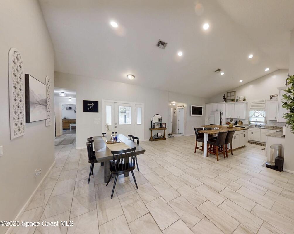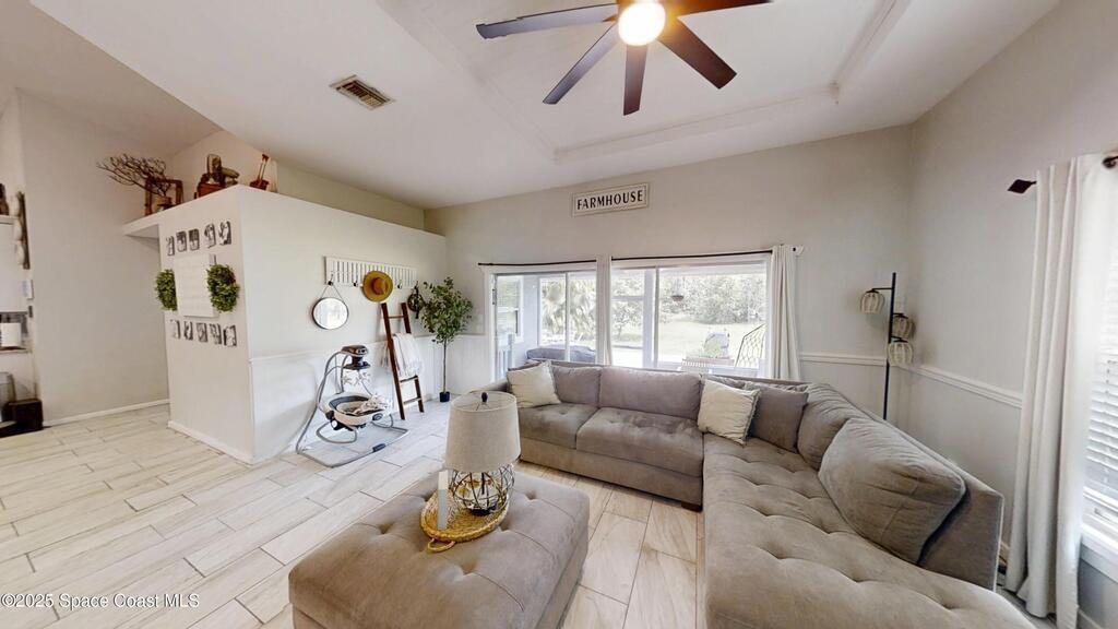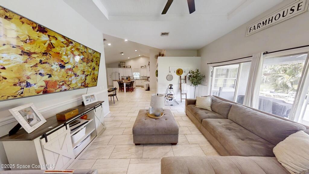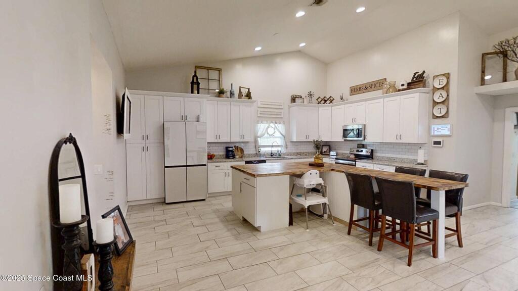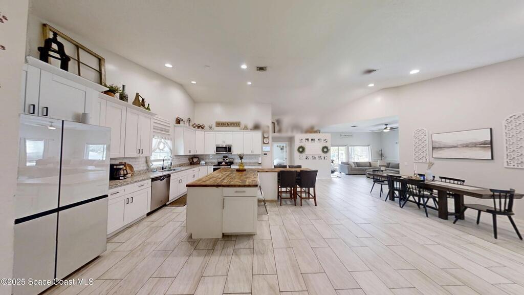Rare Find & PRICED TO SELL!!! 4BED 2.5BATH home with 2 Car Garage on 5Acres featuring 2Lakes and a detached 4Bay Workshop/Garage. Horses allowed! Plenty of room for RV, Boat, ATVs & More. Newer roof, updates & rustic charm. Covered screened entry, open living with split floor plan. Spacious Kitchen with white shaker cabinets, granite counters, subway tile and L Shaped Island/Breakfast Bar with Butcher's Block Top. Full Dining area. Living Room has a tray ceiling & sliders to the rear Screened Porch. Inside laundry with utility sink, cabinets & folding countertop. Extended Primary Suite with sitting area, walk-in closet, and barn door to en suite Bath with dual sinks & walk-in shower. Guest bath with tub/shower combo. All Appliances, ceiling fans, blinds, alarm & garage opener. Exterior extras: long driveway, fire pit, fenced garden with lighting, chicken coop & rear patio. Attached Garage currently set up as a man cave w/custom bar(EZ to convert back). Enjoy the Fellsmere lifestyle