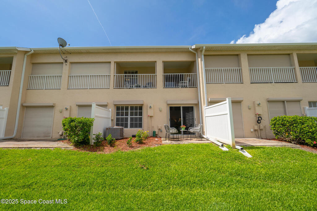 Welcome to Villas by the Sea Townhomes--just steps from the ocean! This beautifully maintained 3-bedroom, 2.5-bath home with attached garage offers spacious beachside living. Ground floor features a bright, tiled kitchen with cheerful cabinetry and an open-concept living and dining area with warm, wood flooring. Sliding glass doors open to a private, paved patio--perfect for relaxing outdoors. You'll also find a convenient half bath, laundry room, storage with central vacuum, and direct access to the garage. Upstairs, the generous owner's suite includes French doors, a walk-in closet, and a luxurious ensuite with double vanity, soaking tub, walk-in shower, and private balcony. Two additional bedrooms with full bath complete the second level. Additional highlights include a welcoming tiled entry, arched doorways, electric hurricane shutters on the balcony & sliders. Embrace effortless coastal living in a home that brings the sea to your doorstep. A/C compressor 2020, A/C handler 2011.