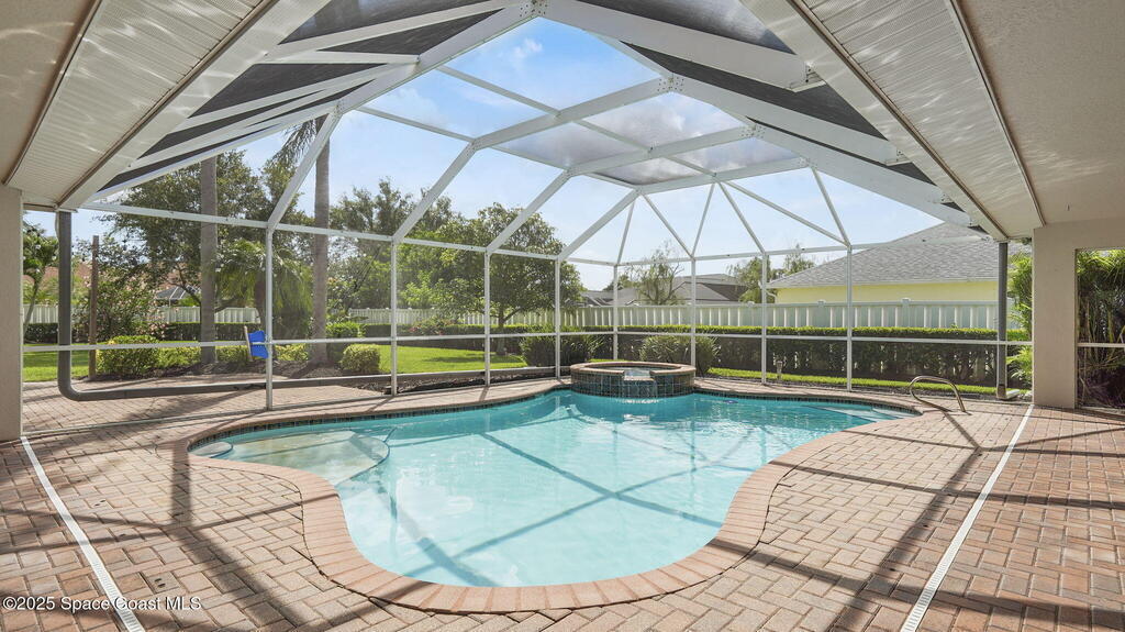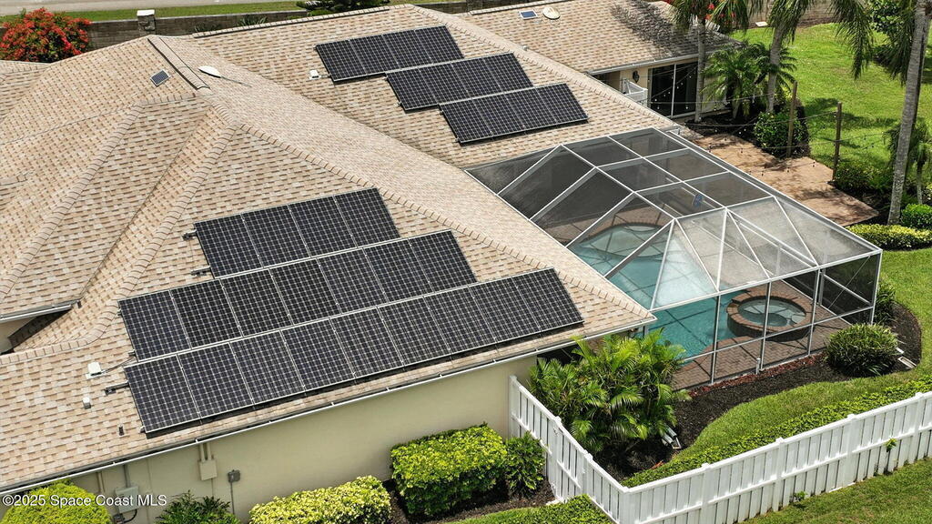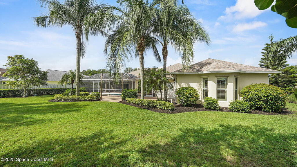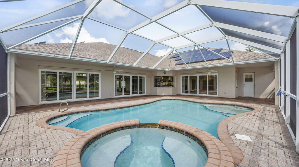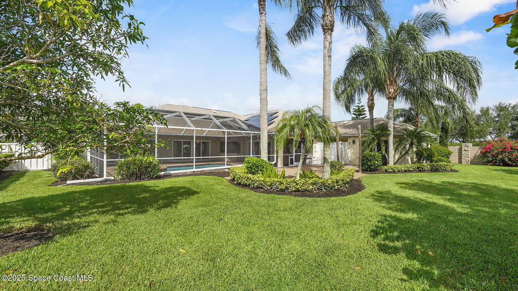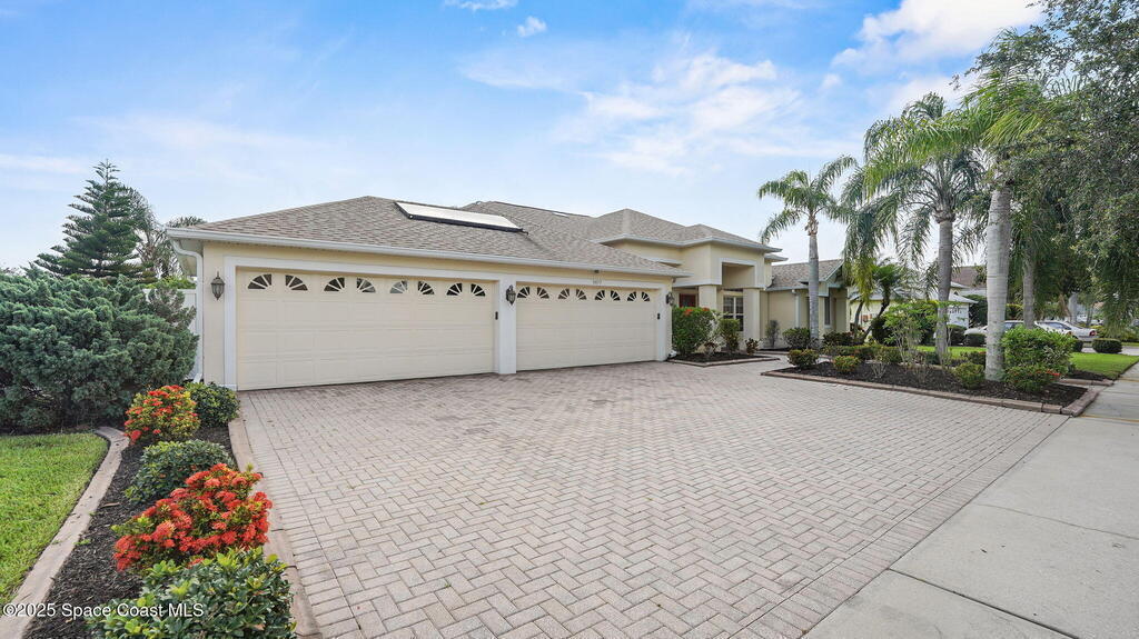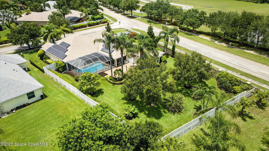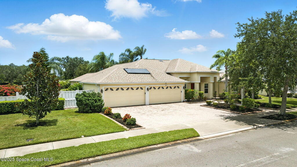 72 hour Kick Out Clause. Tucked away on nearly half an acre in the heart of Viera's sought-after Templeton subdivision, this beautifully updated home is made for Florida living! Enjoy a private, fenced backyard with lush landscaping, a screened pool and lanai, paver patio with bistro lights--perfect for outdoor entertaining. Inside, you'll find wood floors, an updated kitchen and pool bath, and a flexible mother-in-law suite. The spacious primary bedroom includes a cozy sitting room, ideal for a home office or reading nook. A rare 4-car garage offers plenty of room for cars, storage, or hobbies. Whole-house solar adds energy efficiency and peace of mind. Walk to Ralph Williams Elementary, ride your golf cart to Viera East Golf Course, and enjoy quick access to shopping, dining, the Brevard Zoo, I-95, and more. Only 15 minutes to the beach and 45 minutes to Orlando!