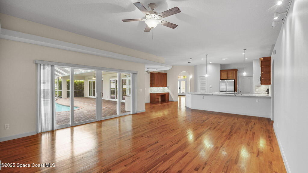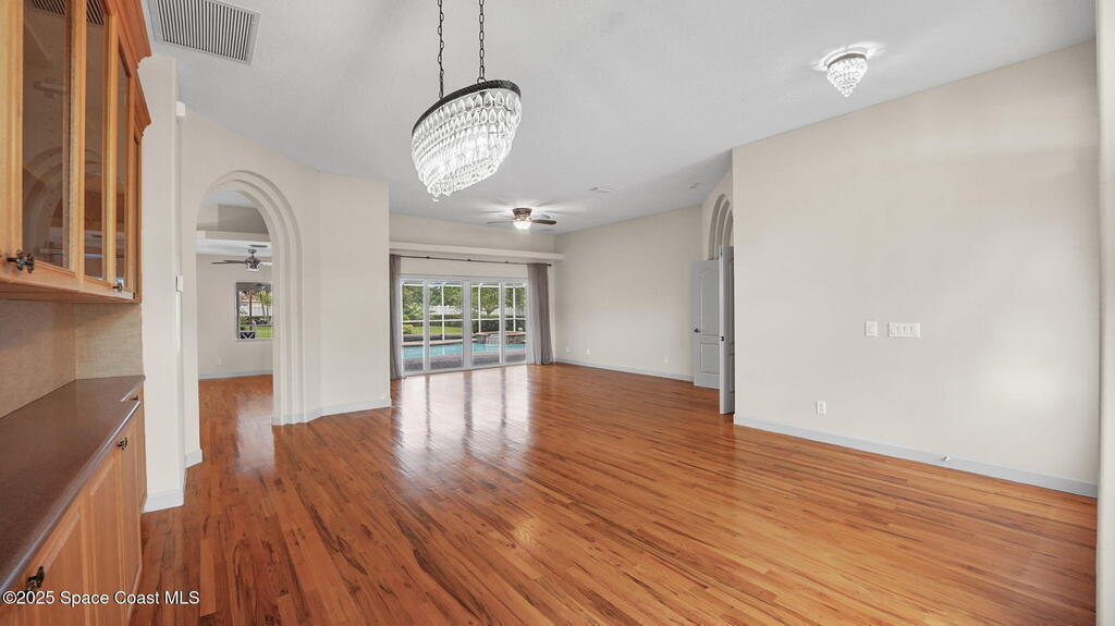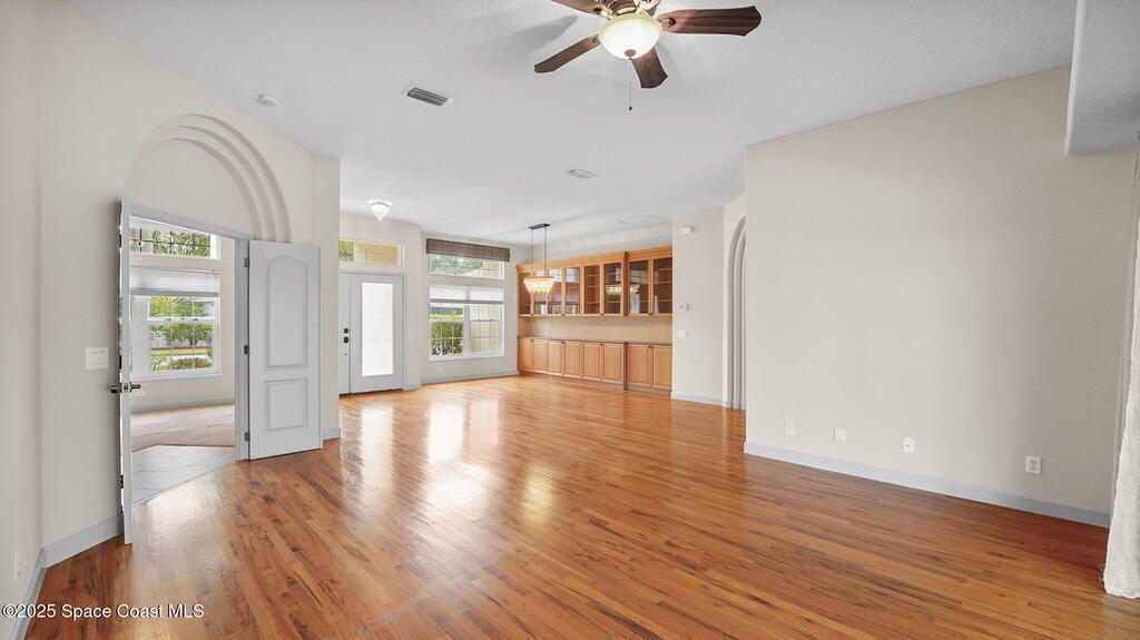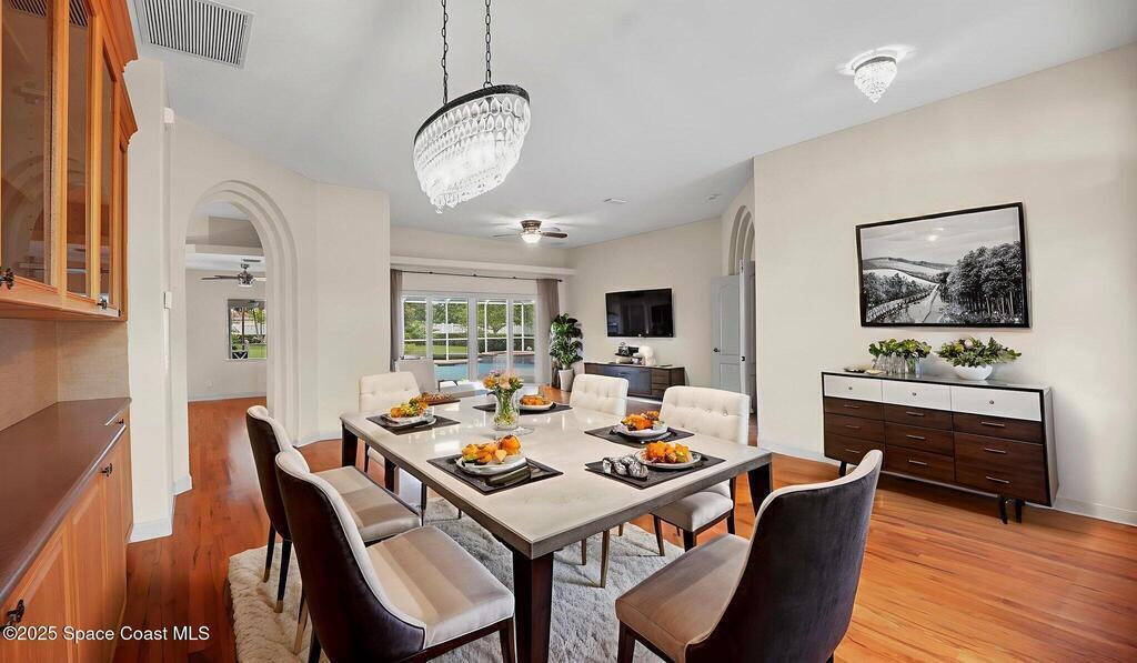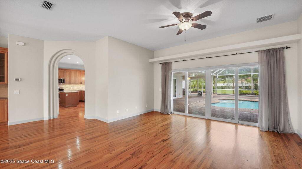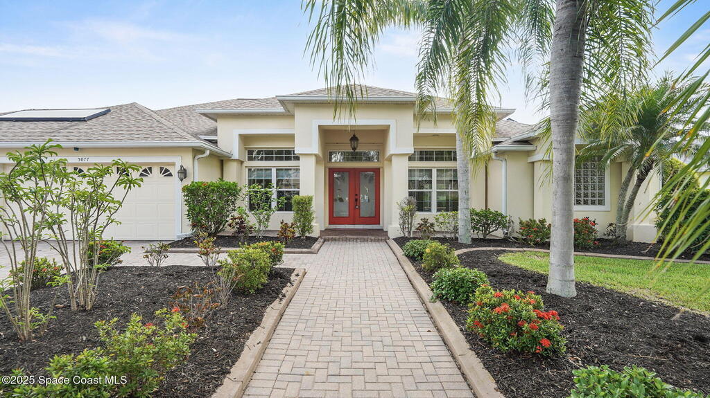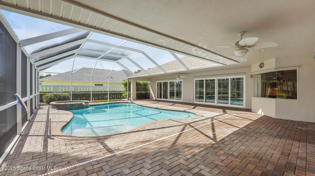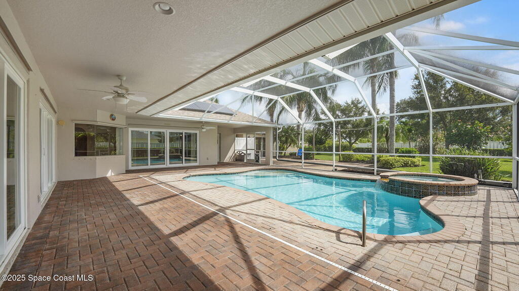 72 hour Kick Out Clause. Tucked away on nearly half an acre in the heart of Viera's sought-after Templeton subdivision, this beautifully updated home is made for Florida living! Enjoy a private, fenced backyard with lush landscaping, a screened pool and lanai, paver patio with bistro lights--perfect for outdoor entertaining. Inside, you'll find wood floors, an updated kitchen and pool bath, and a flexible mother-in-law suite. The spacious primary bedroom includes a cozy sitting room, ideal for a home office or reading nook. A rare 4-car garage offers plenty of room for cars, storage, or hobbies. Whole-house solar adds energy efficiency and peace of mind. Walk to Ralph Williams Elementary, ride your golf cart to Viera East Golf Course, and enjoy quick access to shopping, dining, the Brevard Zoo, I-95, and more. Only 15 minutes to the beach and 45 minutes to Orlando!