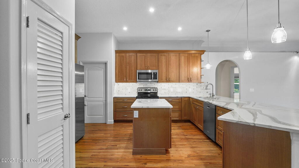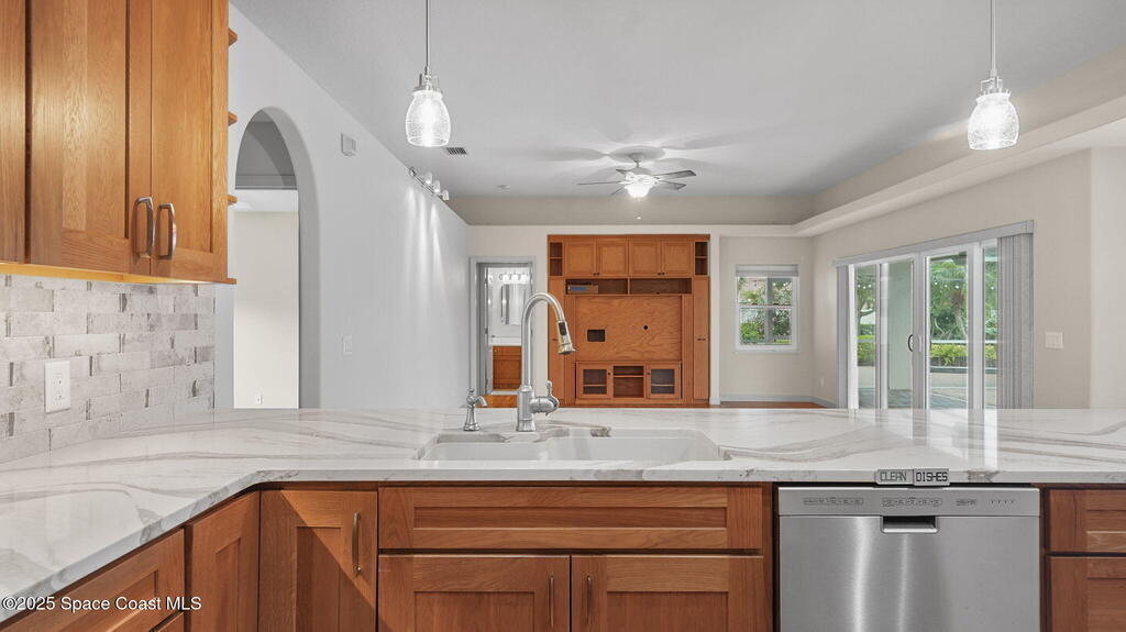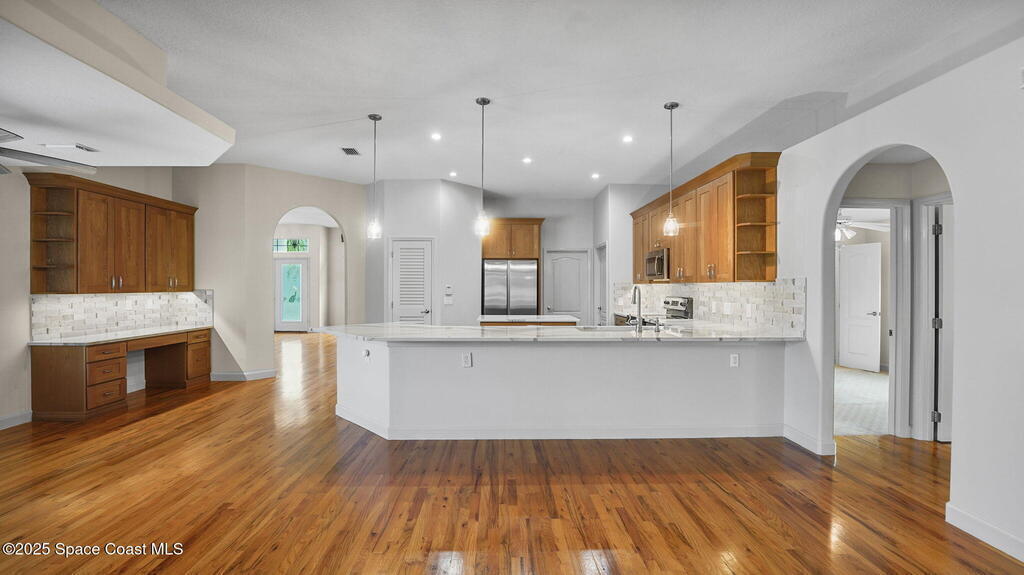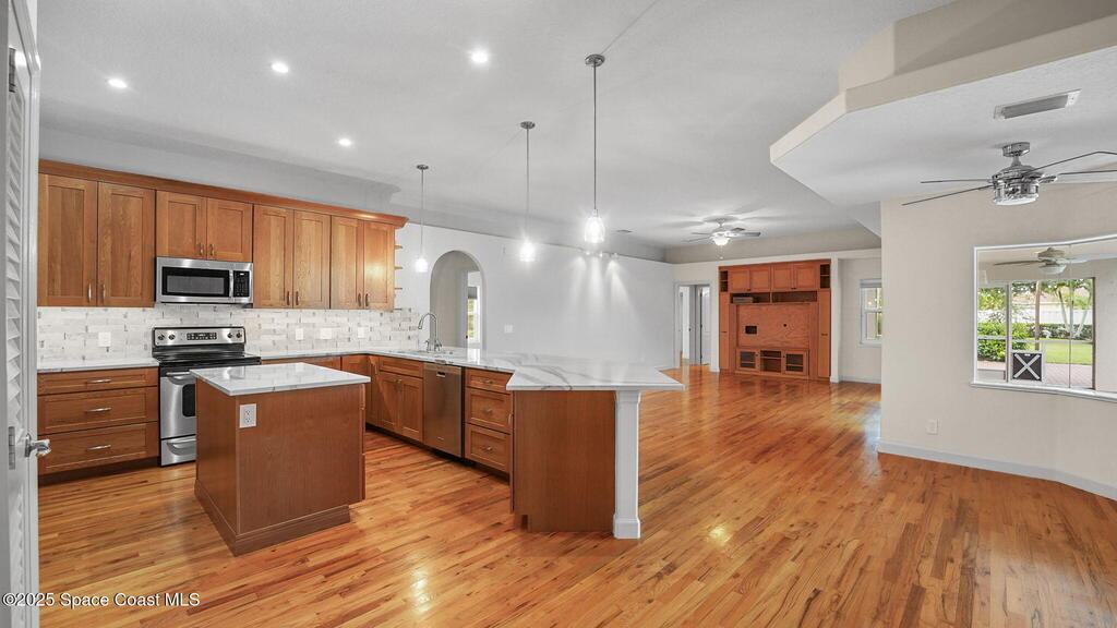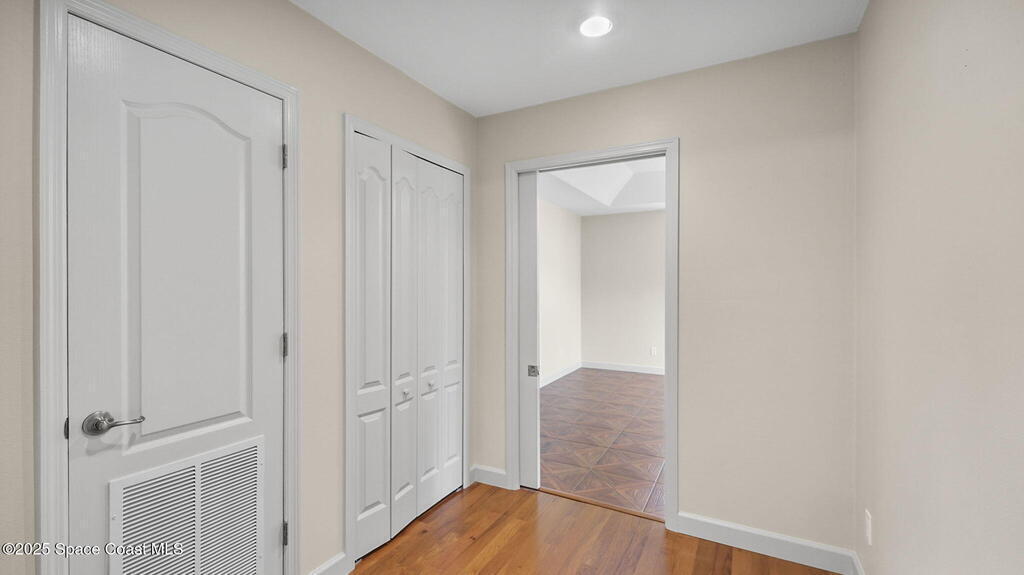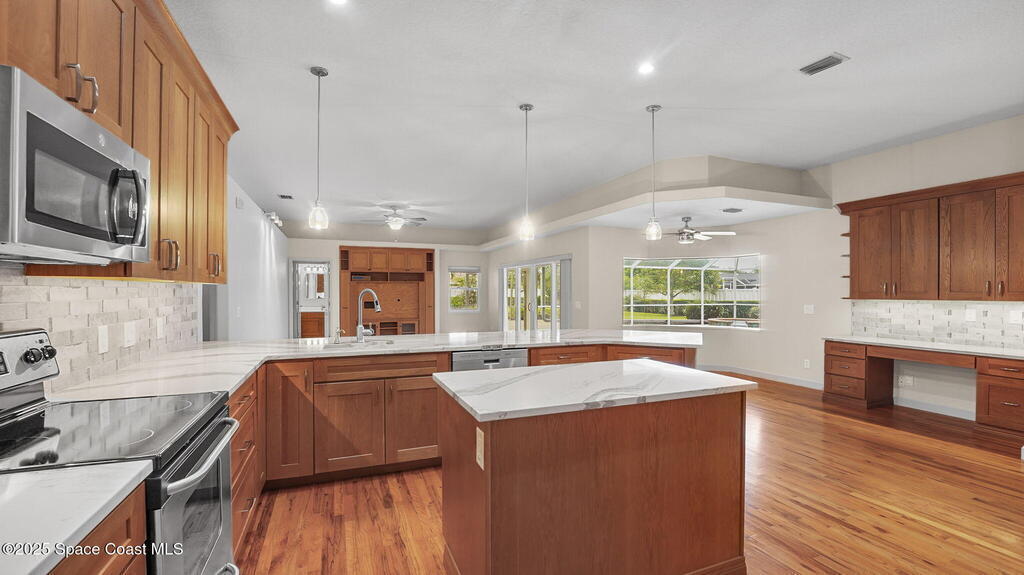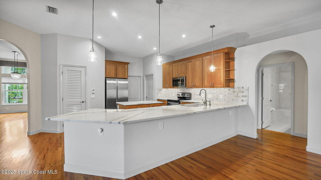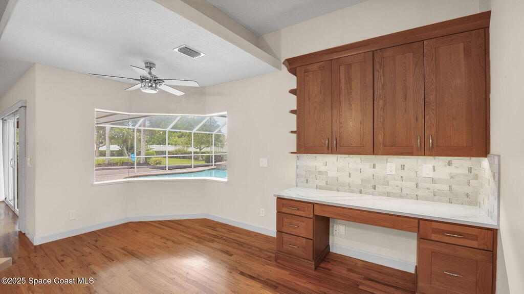 72 hour Kick Out Clause. Tucked away on nearly half an acre in the heart of Viera's sought-after Templeton subdivision, this beautifully updated home is made for Florida living! Enjoy a private, fenced backyard with lush landscaping, a screened pool and lanai, paver patio with bistro lights--perfect for outdoor entertaining. Inside, you'll find wood floors, an updated kitchen and pool bath, and a flexible mother-in-law suite. The spacious primary bedroom includes a cozy sitting room, ideal for a home office or reading nook. A rare 4-car garage offers plenty of room for cars, storage, or hobbies. Whole-house solar adds energy efficiency and peace of mind. Walk to Ralph Williams Elementary, ride your golf cart to Viera East Golf Course, and enjoy quick access to shopping, dining, the Brevard Zoo, I-95, and more. Only 15 minutes to the beach and 45 minutes to Orlando!