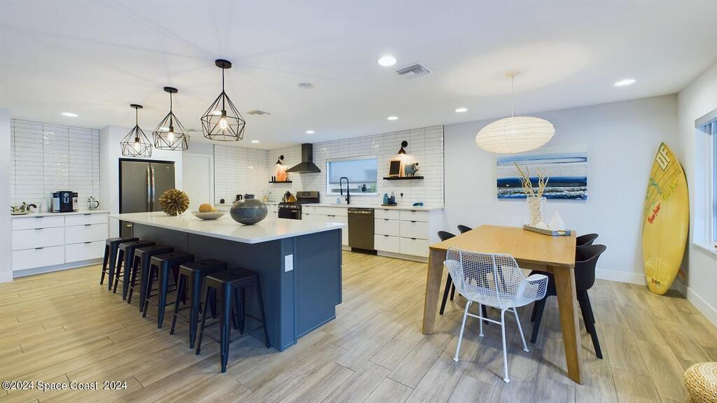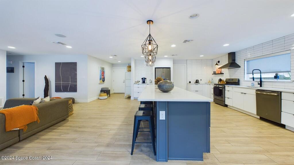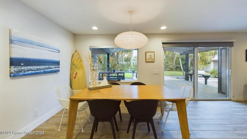 Have you been dreaming of a fabulous beachside rental home? Look No Further! This beautifully renovated fully furnished home is located in the tranquil community of Snug Harbor. This home is PET FRIENDLY! Spend the day surfing or hanging out on the beach. Come home and cook out on the charming lanai while enjoying ocean breezes. You will enjoy the large back yard, the convenience to shopping, restaurants and downtown Cocoa Beach. There is a spacious open floor plan with a tastefully updated kitchen and new appliances. The living area provides plenty of room for relaxing on the sofa with a book or enjoying the big TV with awesome surround sound. Primary bath has just been renovated.