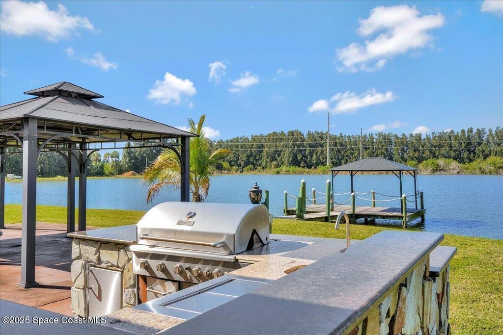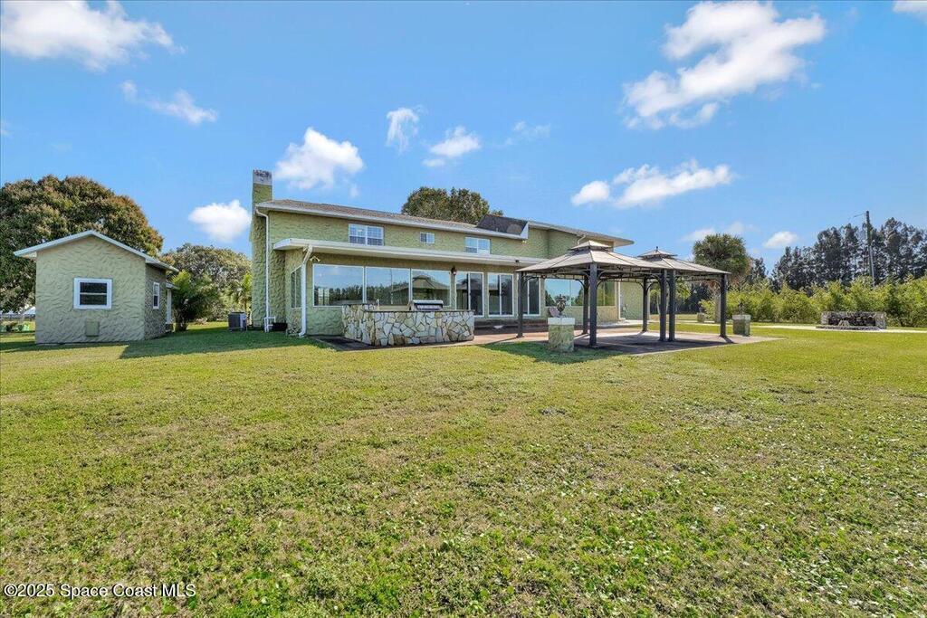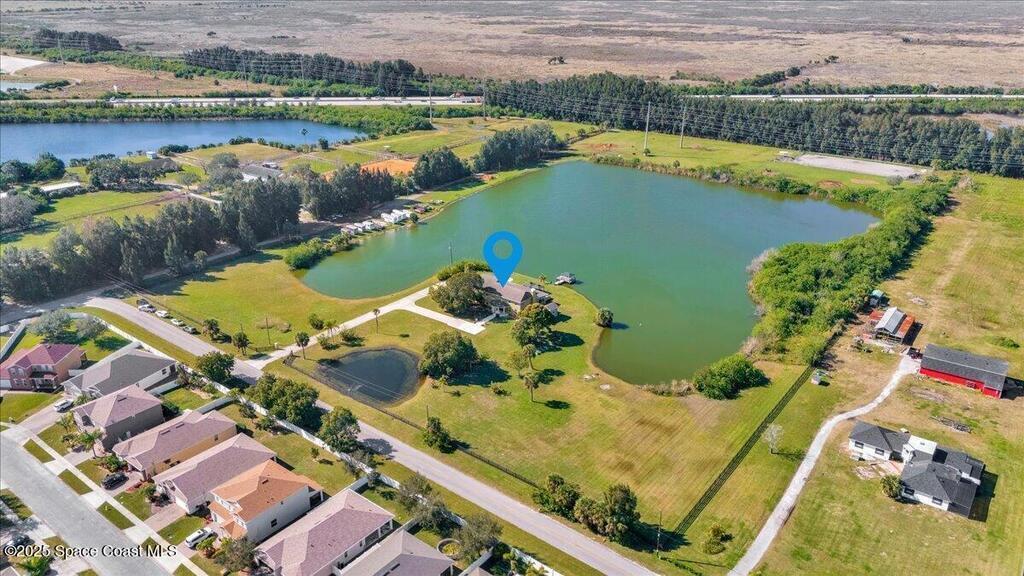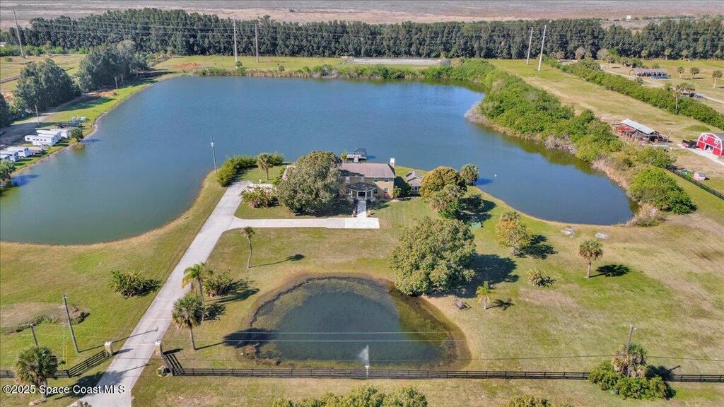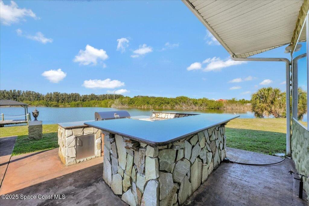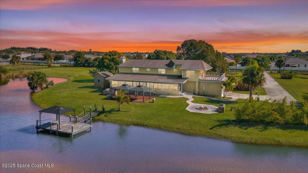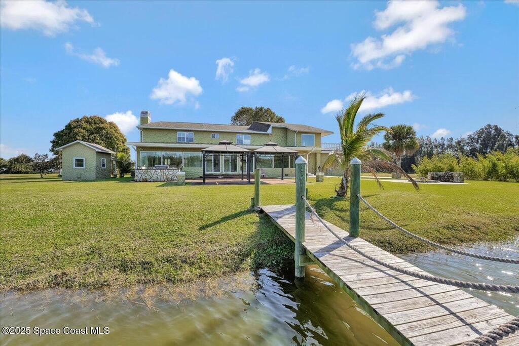 Owner Financing! Discover the estate you've always dreamed of in the heart of Rockledge. This stunning property features 5 bedrooms and 41/2 bathrooms and has been completely renovated in 2015. The kitchen offers a breathtaking view, with an expansive row of sliding glass doors that lead to your very own private stocked lake full of bass, brim, and tilapia. It has stainless steel appliances, black and gold marble countertops, an additional beverage refrigerator, and a full walk-in pantry. On the second floor, you will find an impressively large primary suite, complete with two closets, its own den, and a balcony that overlooks the grounds. Outside you will find a patio equipped with a full outdoor kitchen, fire pit, dock, numerous fruit trees, artesian well fed front pond with Koi fish, and a quaint detached 10X10 cottage with a loft. A true escape from the world from the minute you pull up the driveway. Fully Remodeled 2015, Impact Windows 2015, HVAC 2015, 4 Rail Fence 2023, Roof 201