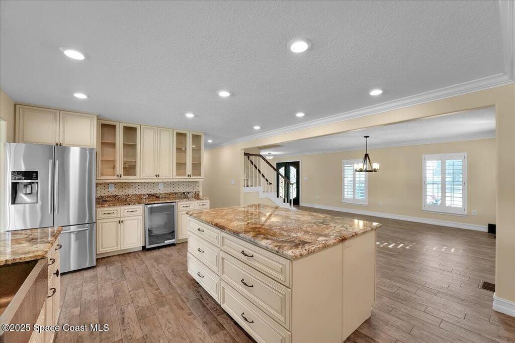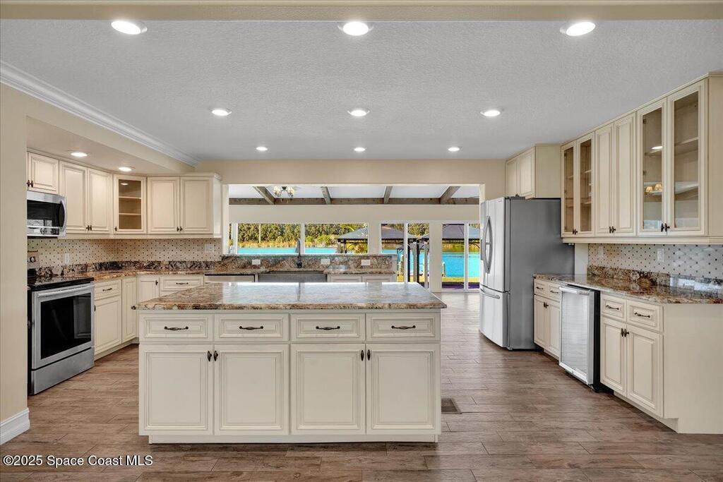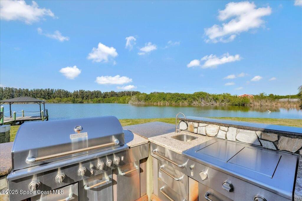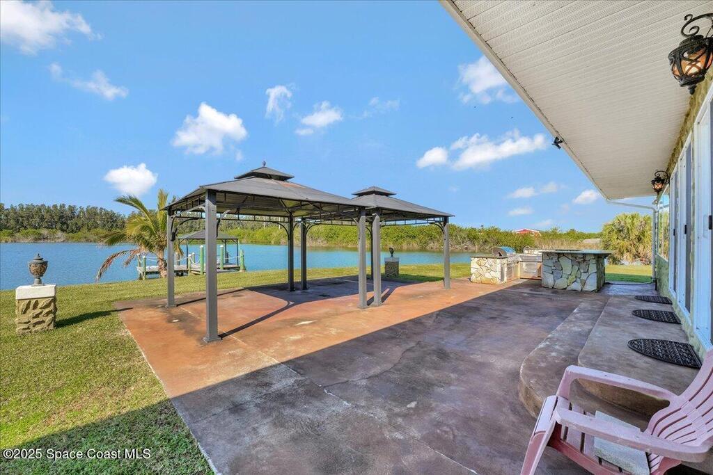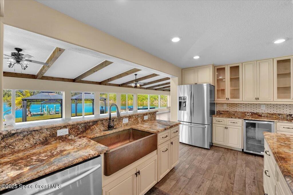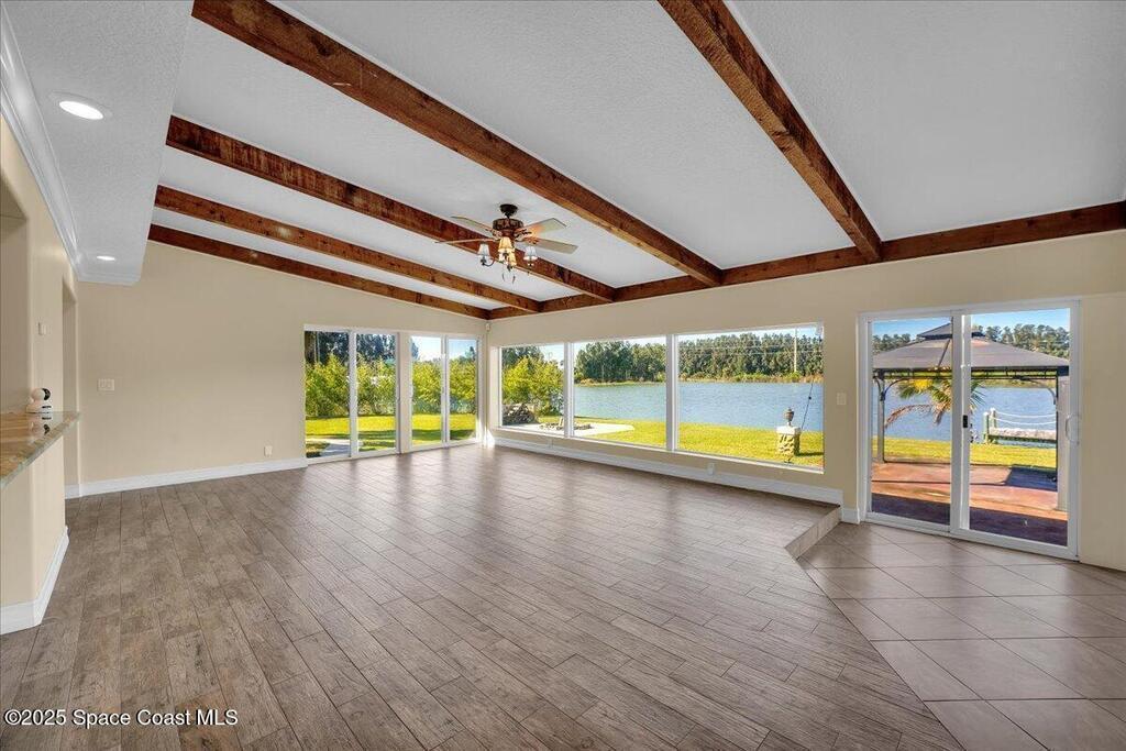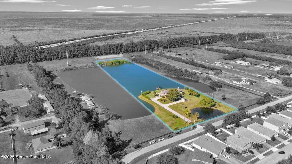 Owner Financing! Discover the estate you've always dreamed of in the heart of Rockledge. This stunning property features 5 bedrooms and 41/2 bathrooms and has been completely renovated in 2015. The kitchen offers a breathtaking view, with an expansive row of sliding glass doors that lead to your very own private stocked lake full of bass, brim, and tilapia. It has stainless steel appliances, black and gold marble countertops, an additional beverage refrigerator, and a full walk-in pantry. On the second floor, you will find an impressively large primary suite, complete with two closets, its own den, and a balcony that overlooks the grounds. Outside you will find a patio equipped with a full outdoor kitchen, fire pit, dock, numerous fruit trees, artesian well fed front pond with Koi fish, and a quaint detached 10X10 cottage with a loft. A true escape from the world from the minute you pull up the driveway. Fully Remodeled 2015, Impact Windows 2015, HVAC 2015, 4 Rail Fence 2023, Roof 201