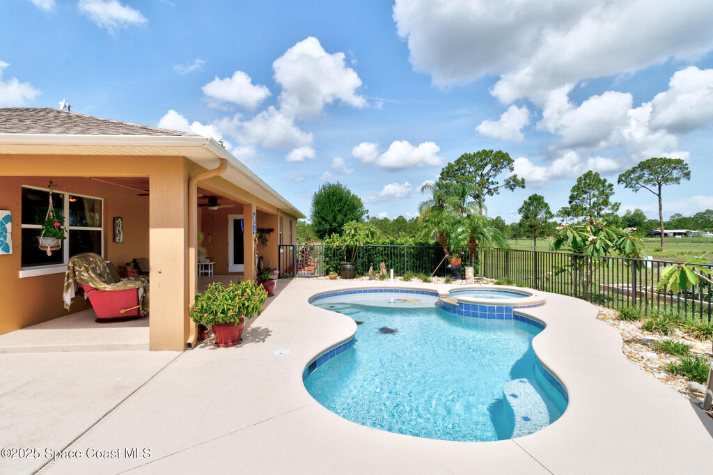 Discover this 5-acre property. Features a charming 3/2 home with a 2 Car garage, fully fenced. Enjoy leisure time year-round with a heated swimming pool and spa, with a safety gate for peace of mind. Pond and a flow well. Guest Accommodations: Cozy 1 BDR, 1 BTHRM cottage currently rented month-to-month for $850, providing instant income. This property is well-suited for cattle or horses, featuring a designated travel trailer hookup (50 AMP) and water access, making it a must-see. Don't miss out on this unique opportunity!
