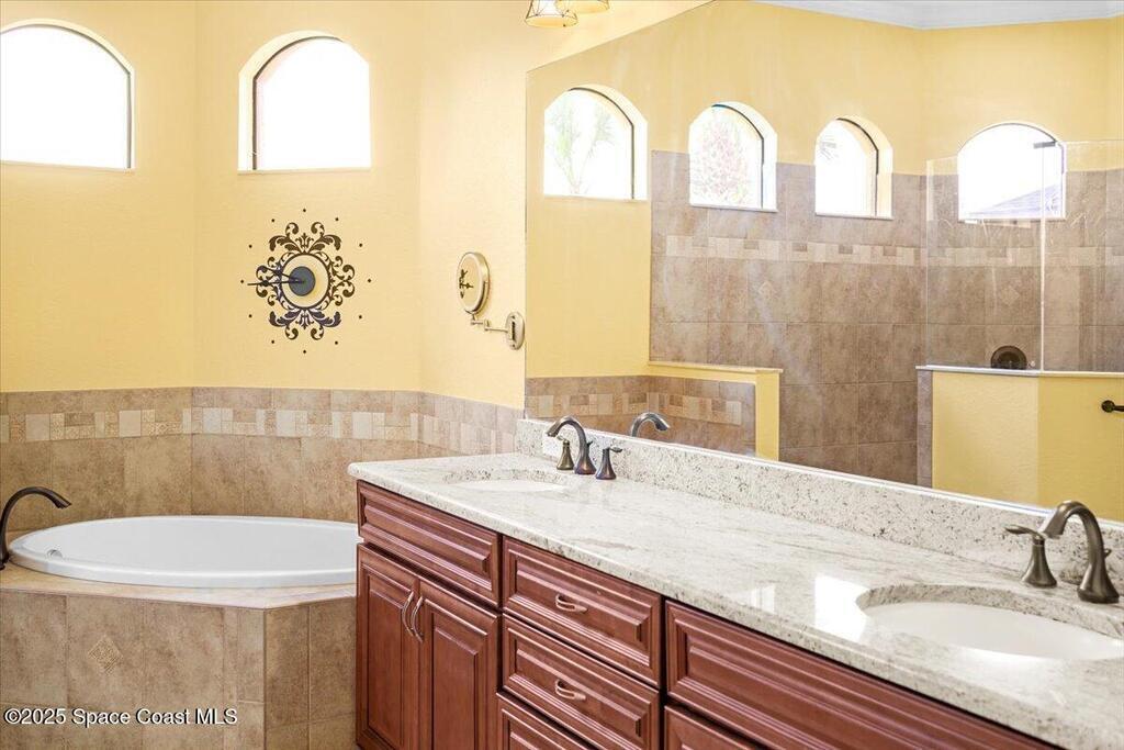 Interior Features: Ceiling Fan(s), His and Hers Closets, Kitchen Island, Pantry, Primary Bathroom -Tub with Separate Shower, Primary Downstairs, Split Bedrooms and Walk-In Closet(s)