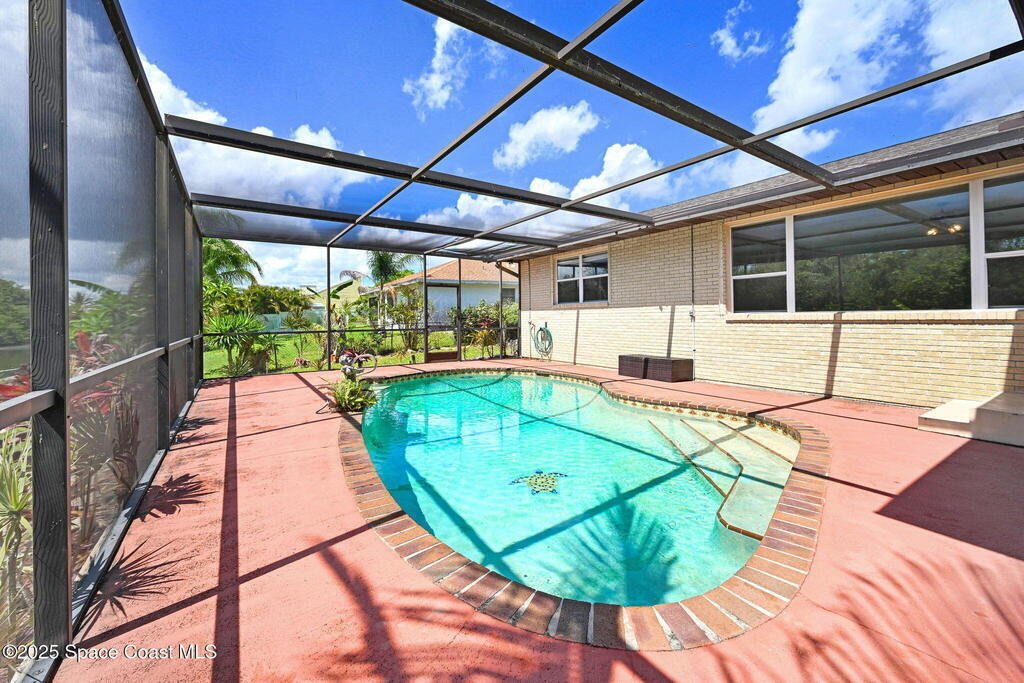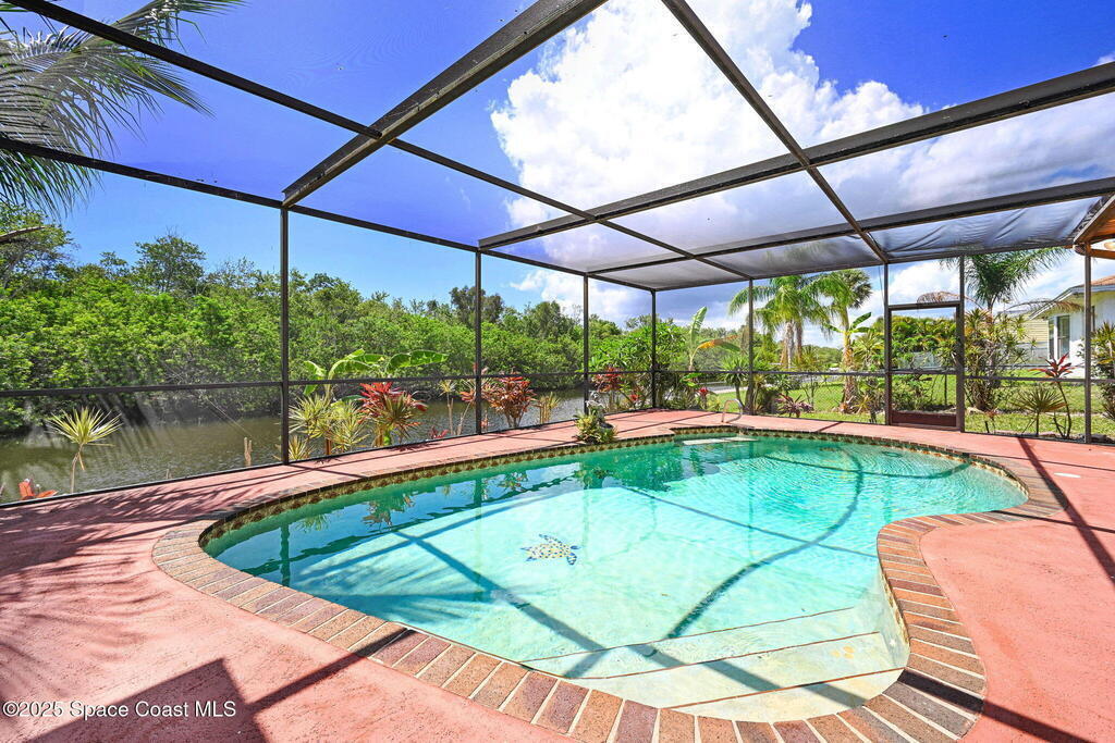 WATERFRONT OCEAN ACCESS ON TURKEY CREEK SCREENED POOL HOME! Your tropical retreat awaits in one of Palm Bay's most desirable communities. This 3 bedroom, 3 bath brick home offers stunning views right in your own backyard! Enjoy watching dolphins, manatees, and tropical birds right from your own Private Pool Deck! The very large living room and Family Room overlook Turkey Creek and your own private pool, creating a perfect setting for relaxing or entertaining friends and family! Kitchen features newer appliances replaced in 2021! All bedrooms have newer luxury vinyl plank flooring. Plus a Bonus 3rd Bath in the garage! Main roof 2020, Flat Roof 2024. Freshly painted interior. Enjoy this peaceful and private home right on Turkey Creek- NO HOA! Just minutes from Shopping, Downtown Melbourne, Hospitals, Beaches and dining. Turkey Creek is a navigable canal with Direct Ocean Access. Enjoy your own space of serenity and calm!
