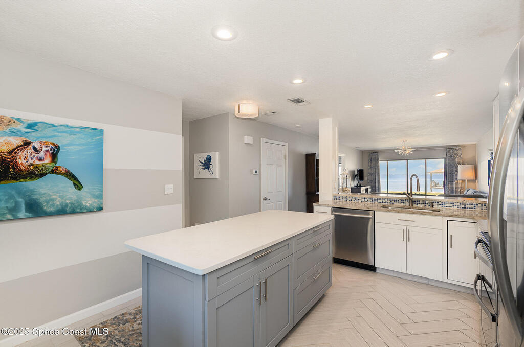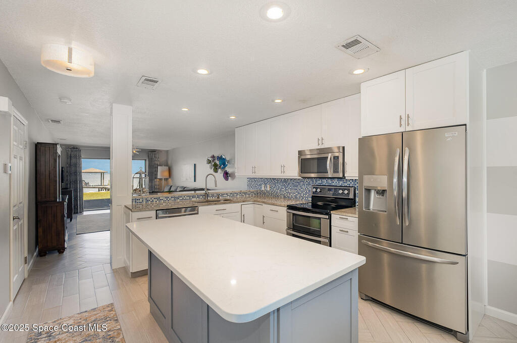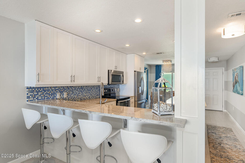 Experience DIRECT RIVERFRONT living at its finest in this BEAUTIFULLY UPDATED 2 Bed, 2 Bath Condo in desirable South Cocoa Beach, a local's favorite close to restaurants & shopping, yet quiet & residential with refreshing ocean to river breezes! This 2-story bldg is up to date on all major projects plus is not subject to the higher reserve budget requirements of 3+ story buildings. This unit offers tile flooring throughout, a stylish kitchen featuring wood cabinetry, granite countertops, spacious island, & stainless steel appliances. Enjoy the convenience of in-unit laundry, ample storage, & private 1-car garage plus an extra assigned space. Primary suite includes a walk-in closet, linen storage, patio access, & a modern en-suite bathroom. Unwind on your front or rear covered patios or soak in stunning sunsets from the community dock's covered sitting area. Pet-friendly up to 25lbs & 6 month minimum rentals. This coastal gem combines comfort, convenience, and breathtaking views!