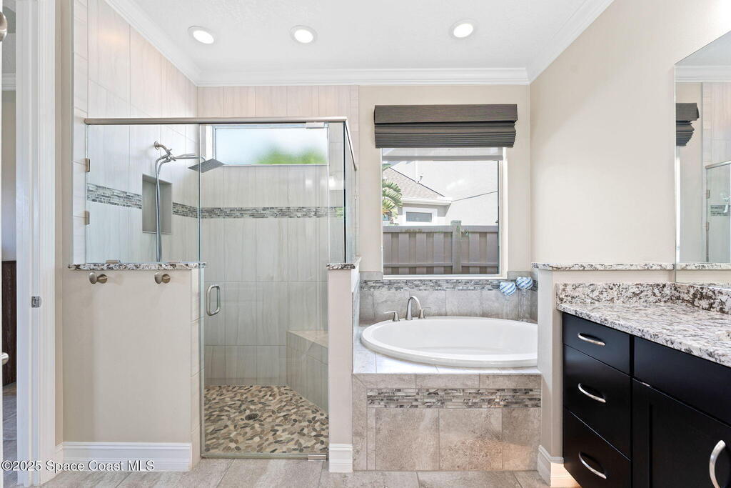 Interior Features: Breakfast Bar, Breakfast Nook, Built-in Features, Butler Pantry, Ceiling Fan(s), Central Vacuum, Eat-in Kitchen, Guest Suite, His and Hers Closets, Kitchen Island, Open Floorplan, Pantry, Primary Bathroom -Tub with Separate Shower, Primary Downstairs, Smart Thermostat, Split Bedrooms and Walk-In Closet(s)