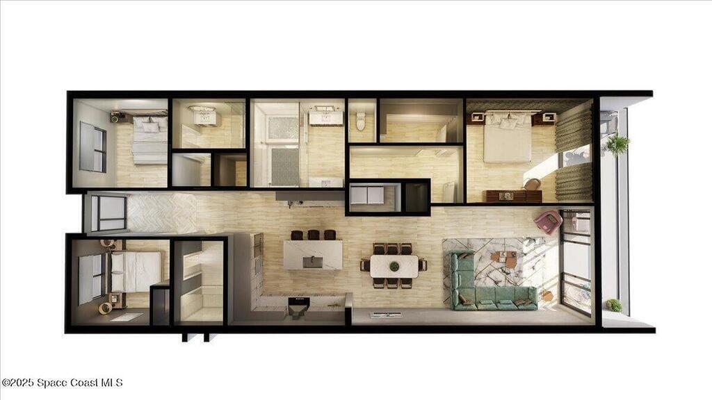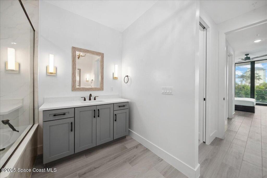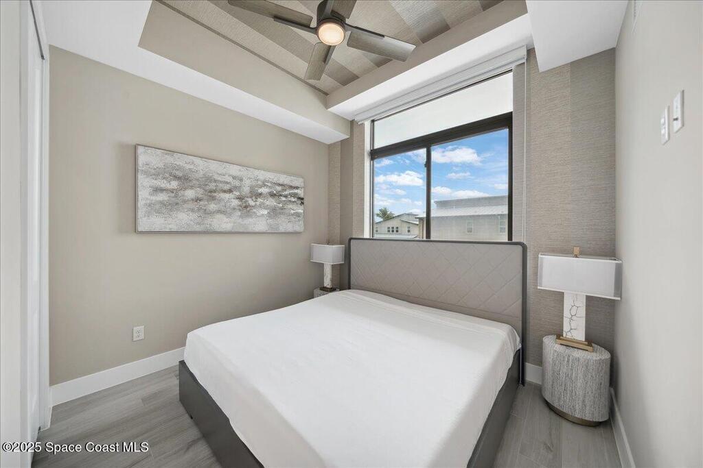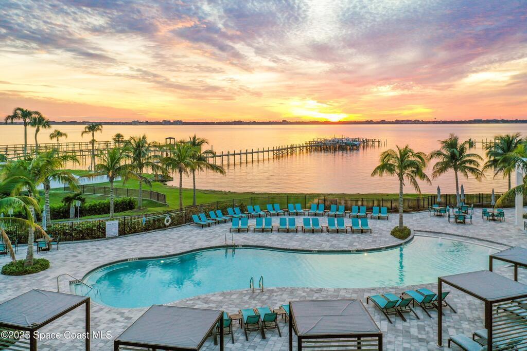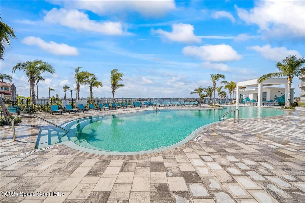 Embrace coastal living on the western hemisphere's largest turtle nesting beach with this modern-build-resort that spans from the Indian River Lagoon to the Atlantic Ocean. Relax knowing you are in an expertly built concrete super-structure where exterior strength and interior design meet tastefully in this fully furnished turnkey property. The open floorplan features three bedrooms, including two elegant en suites, and three full baths, providing an inviting and spacious haven. Unwind by the riverside resort-style pool cabanas or walk along the beaches where turtle hatchlings race to the ocean. Amenities include a future gym, marina, watersport rental and a beachside comfort station. Lastly, if you can't live here all the time, take comfort in knowing you have flexible rental options.