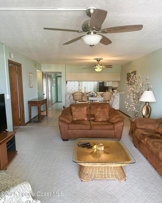 Top-floor south-side condo with a great ocean view. Resort Style Living. Create your own beachside retreat. Spacious 2-bedroom, 2-bath Condo. Primary bedroom with en-suite bath. The kitchen with a breakfast bar is open to the dining & living room areas. Sliders from the living room to the balcony, where you can enjoy the ocean breezes and sounds of the surf! One car private garage. Amenities: heated pool/spa/tennis/pickle ball courts/private beach access.Paradise Awaits You! This condo is made for FUN In the SUN! Or maybe you want investment: daily weekly rentals allowed. Sandcastles is just minutes from downtown Cocoa Beach with its many wonderful eateries.Just 40 minutes to Orlando International and an hour to Orlando Attractions.Come see for yourself.