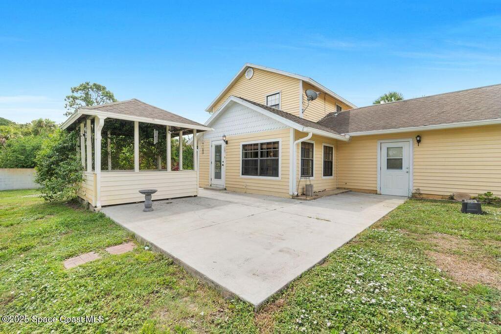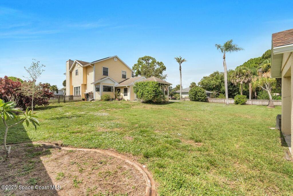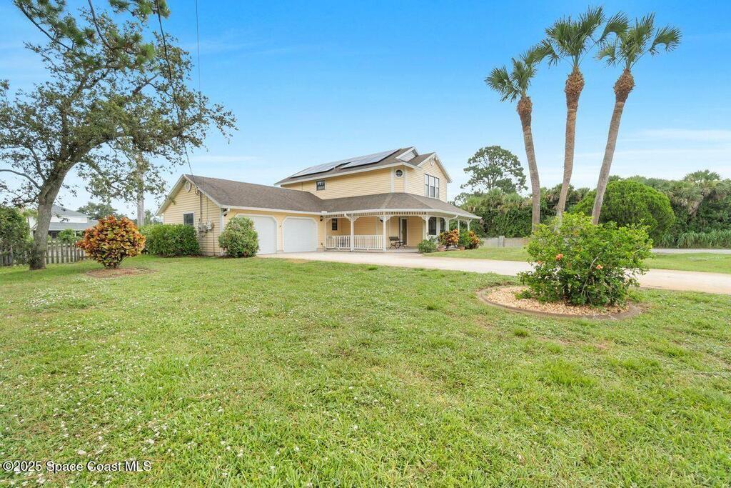Step into timeless elegance with this Victorian style custom home, nestled in the heart of PSJ. Situated on .51 acre corner lot, this residence combines classic charm and modern comfort. Inside you'll find hardwood floors, abundant natural light and thoughtful architectural details, offering both formal LR/DR, as well as a cozy wood burning fireplace a comfortable family room and bonus room-ideal for home office or playroom. The spacious kitchen is perfect for entertaining, featuring granite counters, solid wood cabinetry and plenty of storage. All bdrms are upstairs and the primary has vaulted ceilings, his/her walk-in closets, while secondary bedrooms offer generous spaces. Enjoy the outdoors from your wrap around porch, or relax in the charming gazebo, overlooking a beautiful backyard. There's a detached one car garage with a whole house generator hookup and whole house SOLAR! This inviting home is in a top rated school district and close to shopping, the beach and the Space Center