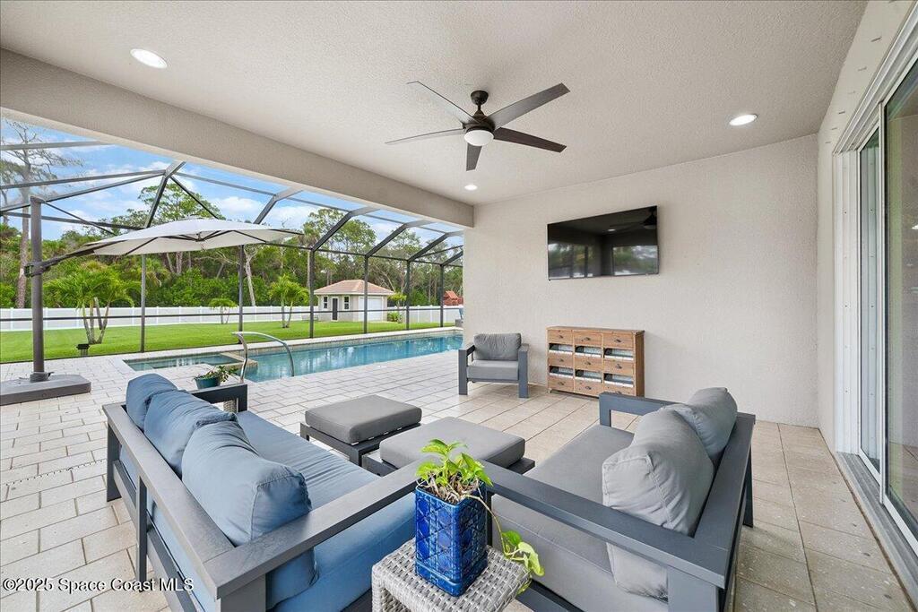 Welcome to this stunning 2017 custom-built home located in the prestigious, gated community of Woodshire Preserve. Designed with comfort and elegance in mind, this beautifully maintained residence features four spacious bedrooms, all with walk-in closets plus a dedicated office, ideal for working from home or accommodating guests. The gourmet kitchen is a true showstopper, complete with a massive 15-foot granite island, double ovens, and a built-in wine cooler--perfect for entertaining. Step outside to your private oasis with a saltwater pool and spa. Concrete block shed built to match the home, shed is equipped with hurricane-rated windows. Enjoy year-round peace of mind with a whole home generator featuring a brand-new battery, along with a newly installed A/C unit. This home combines high-end finishes, thoughtful upgrades, and exceptional functionality in one of the area's most desirable communities. Don't miss the chance to experience luxury living in Woodshire Preserve.