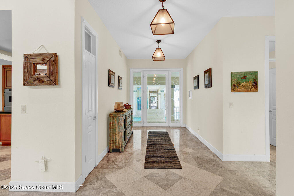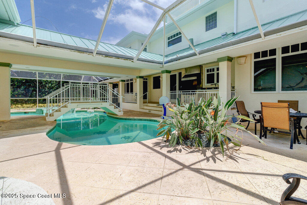 Motivated seller! Oceanfront paradise with private beach access! This stunning coastal estate offers soaring ceilings, an open layout bathed in natural light, and panoramic Atlantic views. The home features extra-large garages--ideal for car enthusiasts, boaters, or workshop space--and a private guest apartment above with its own entrance, perfect for visitors or multi-generational living. Enjoy the screened-in patio and resort-style pool, set amid lush tropical landscaping and swaying palms. A gated entry adds privacy, while your private beach walkway leads directly to miles of sandy shoreline. Designed for both relaxation and entertaining, this luxurious retreat blends practical features with timeless coastal elegance. Paradise truly found.
