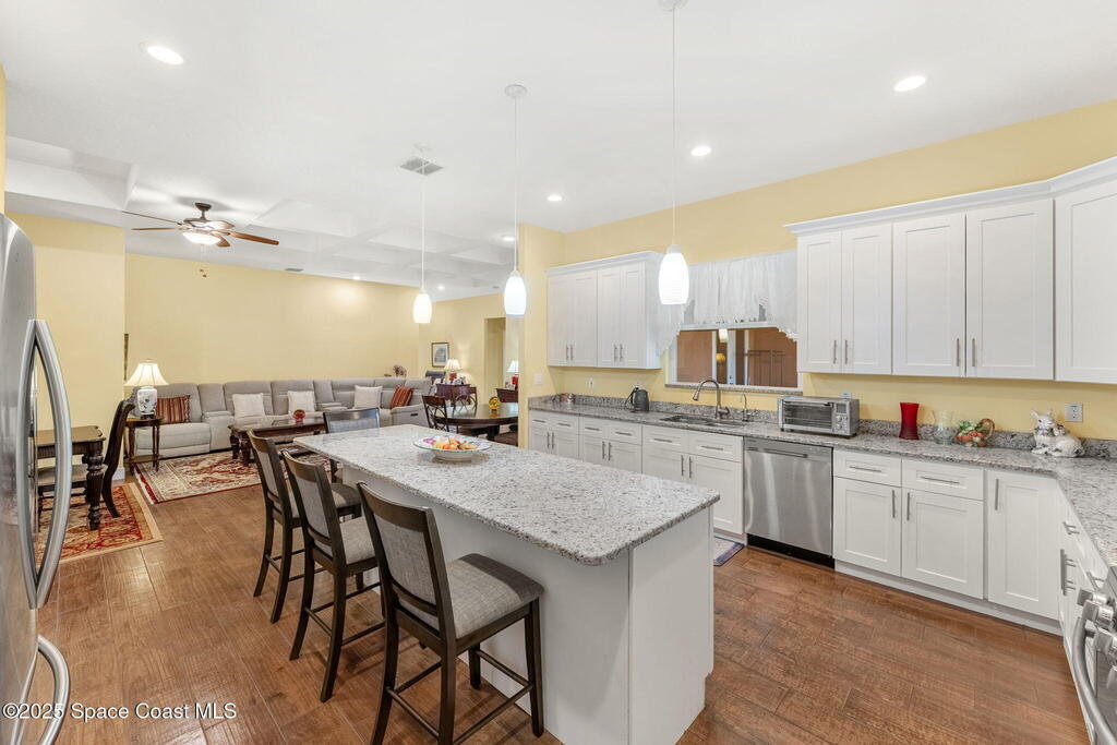Be prepared to be WOWED! This custom built 3 Bedroom, 3 Bathroom city water home with a Flex/4th bedroom potential-Offers all the upgrades you could imagine- From the high ceilings with coffered finishes , tile throughout, large kitchen with soft close cabinets, walk in pantry, laundry room with custom cabinetry, impact windows, gas/propane for water heater/stove, extended garage fenced yard with fruit trees and more!